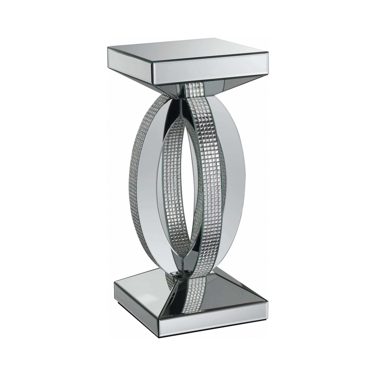 - Crafted of mirrors for a sleek, high-shine look