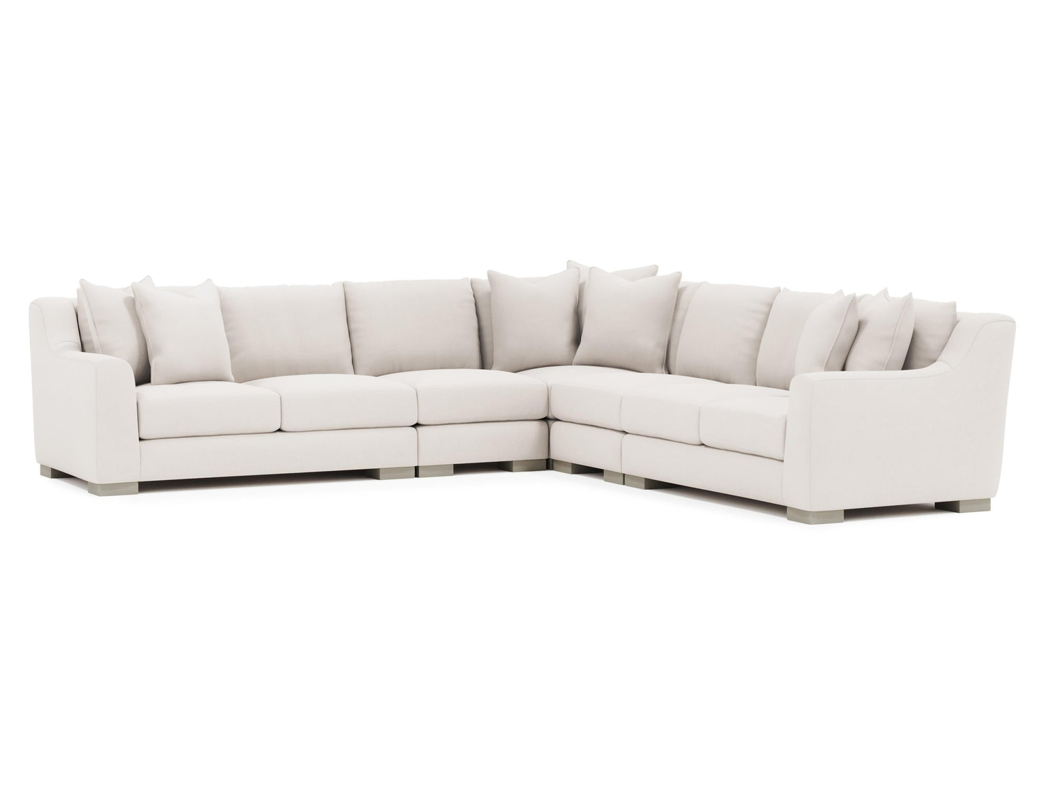 The Gabi sectional offers an alluring comfort destination with sweeping lush curves. The oversized arms frame deep seats and knife-edge back pillows. Exposed wood block feet support the bold design.