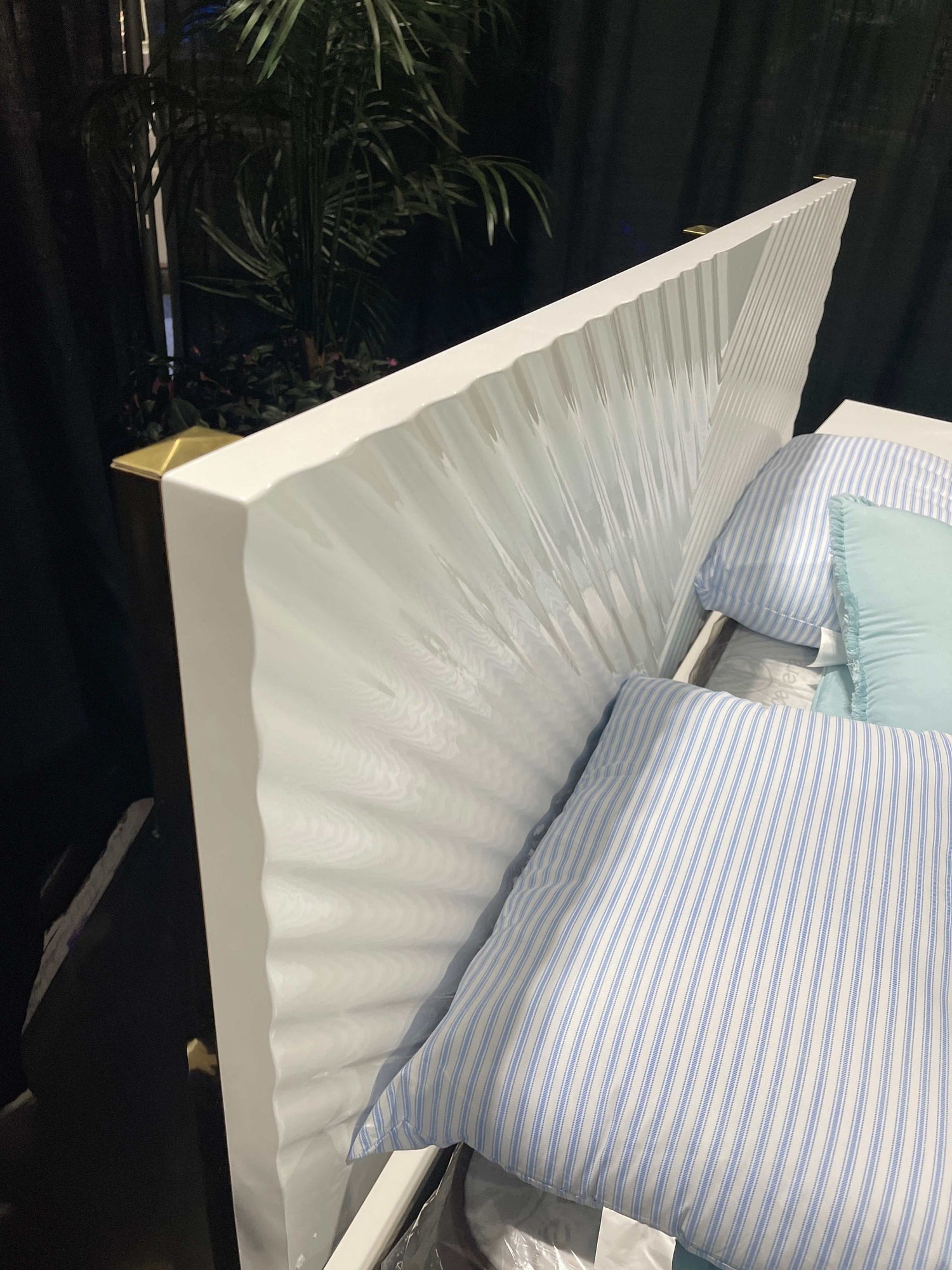 The Gaines Collection is a glamorous and sophisticated grouping that adds a chic style to any room. The white gloss finish and gold metal accents help to accentuate the clean lines of the pieces and add a pop of glamour. The diagonal line design adds visual interest and texture, making each piece stylish. With a variety of storage options to meet your needs.