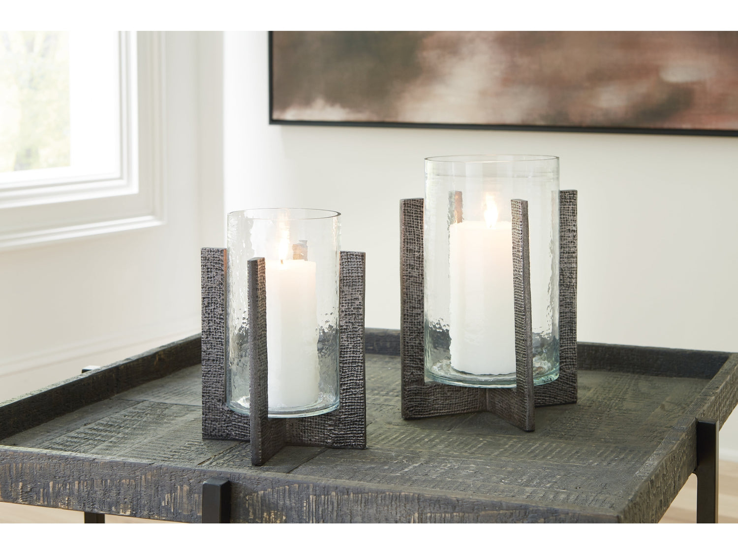 Garekton Clear/Pewter Finish Candle Holder (Set of 2)