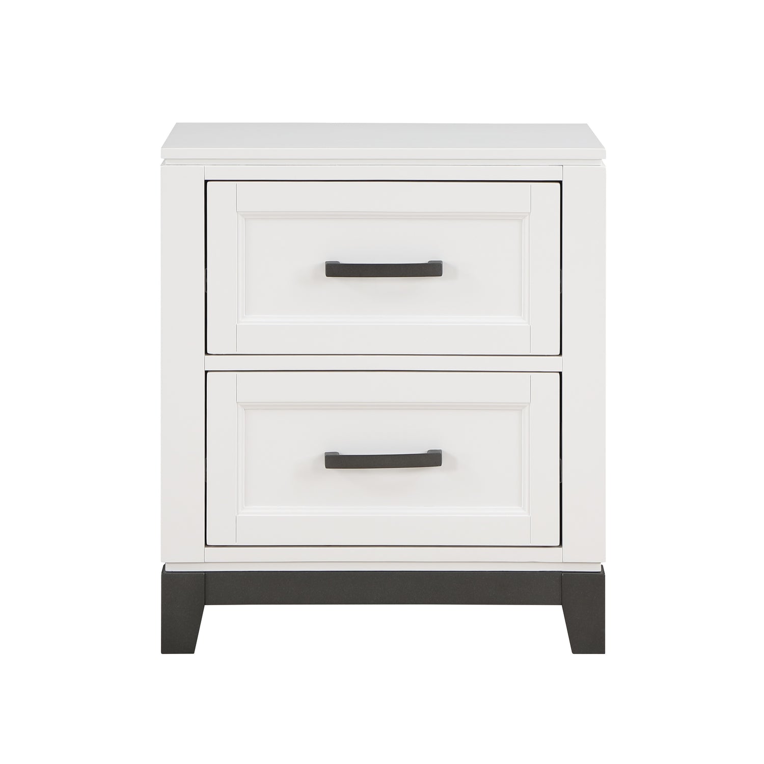 The Garretson Collection blends transitional lines with rustic styling to create an elegant addition for your bedroom. The distinct grain features a 2-tone finish. Metal bar hardware fronts the picture frame drawer fronts of the storage footboard, dresser, mirror, and chest. The two drawers of the low-profile footboard create additional space within your room for soft good storage.