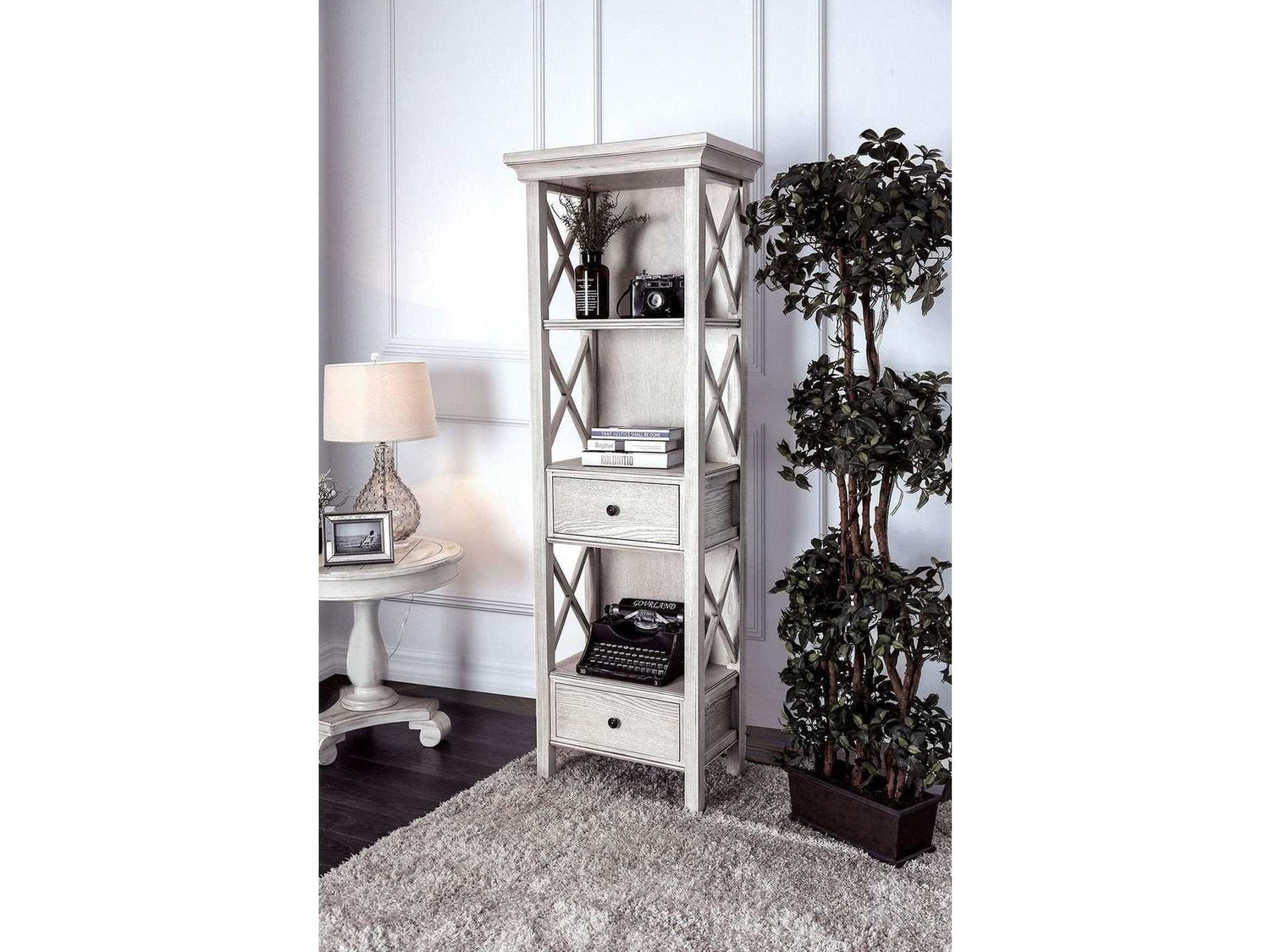 This spacious media stand is brimming with class. Two large open shelves allow you to showcase your media devices and give you quick access. The cabinet faces feature a cottage style etching, column styled corners, and antique white finish to make for an exemplary rustic addition to your home. The Pier cabinets feature multi drawers, open cabinets and cross shaped support trellises giving the entire collecting a warm inviting feel.