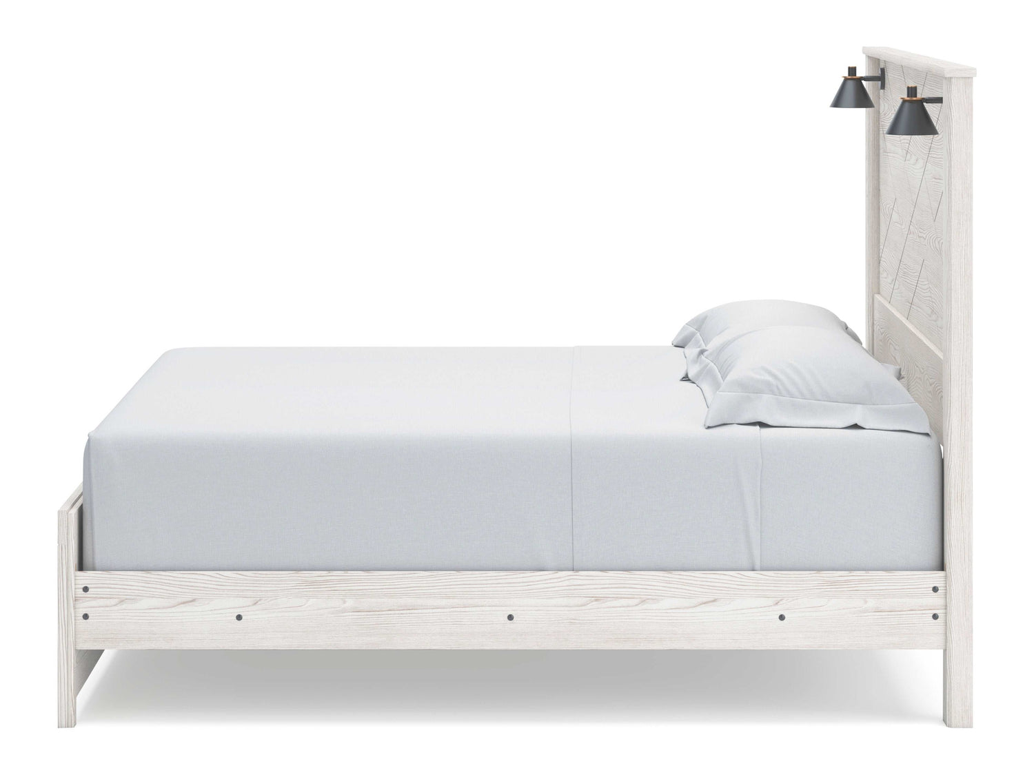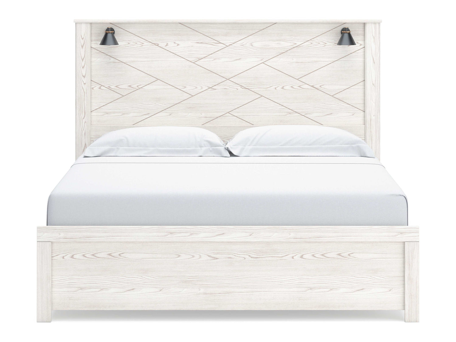 Gerridan White & Gray King Panel Bed Frame w/ Sconce Lights HB