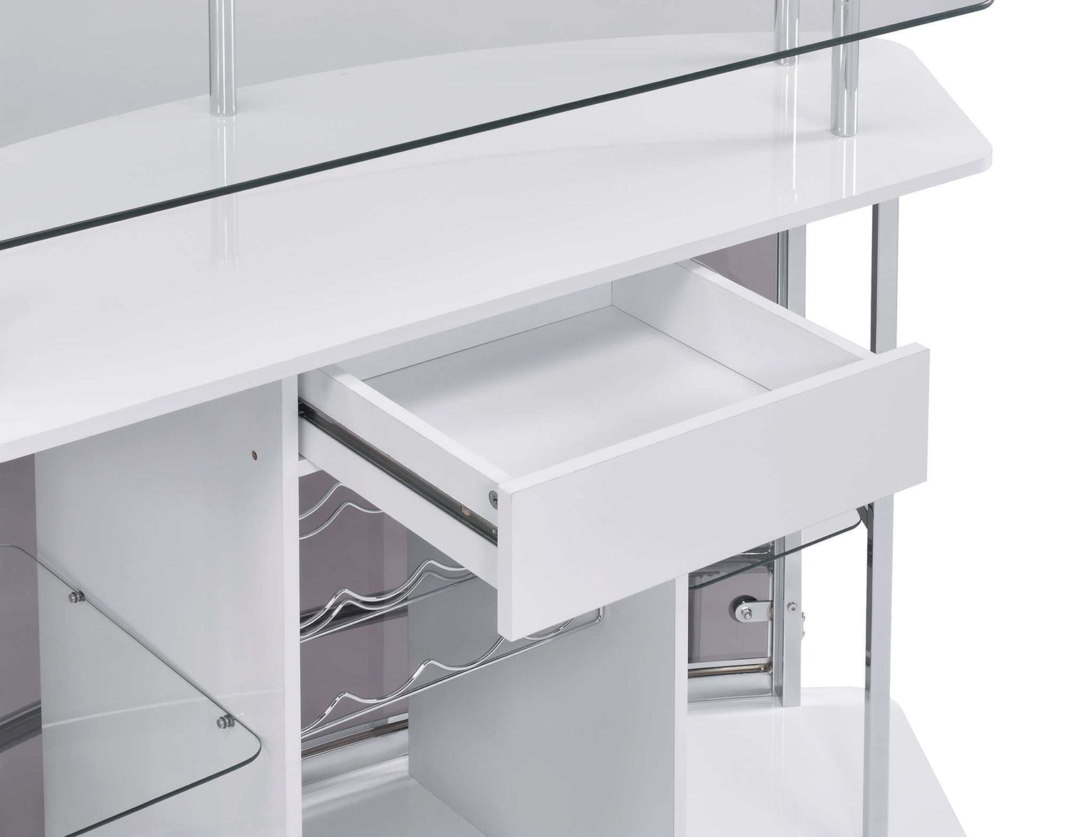 Contemporary crescent shaped front bar unit in white high gloss lacquer finish