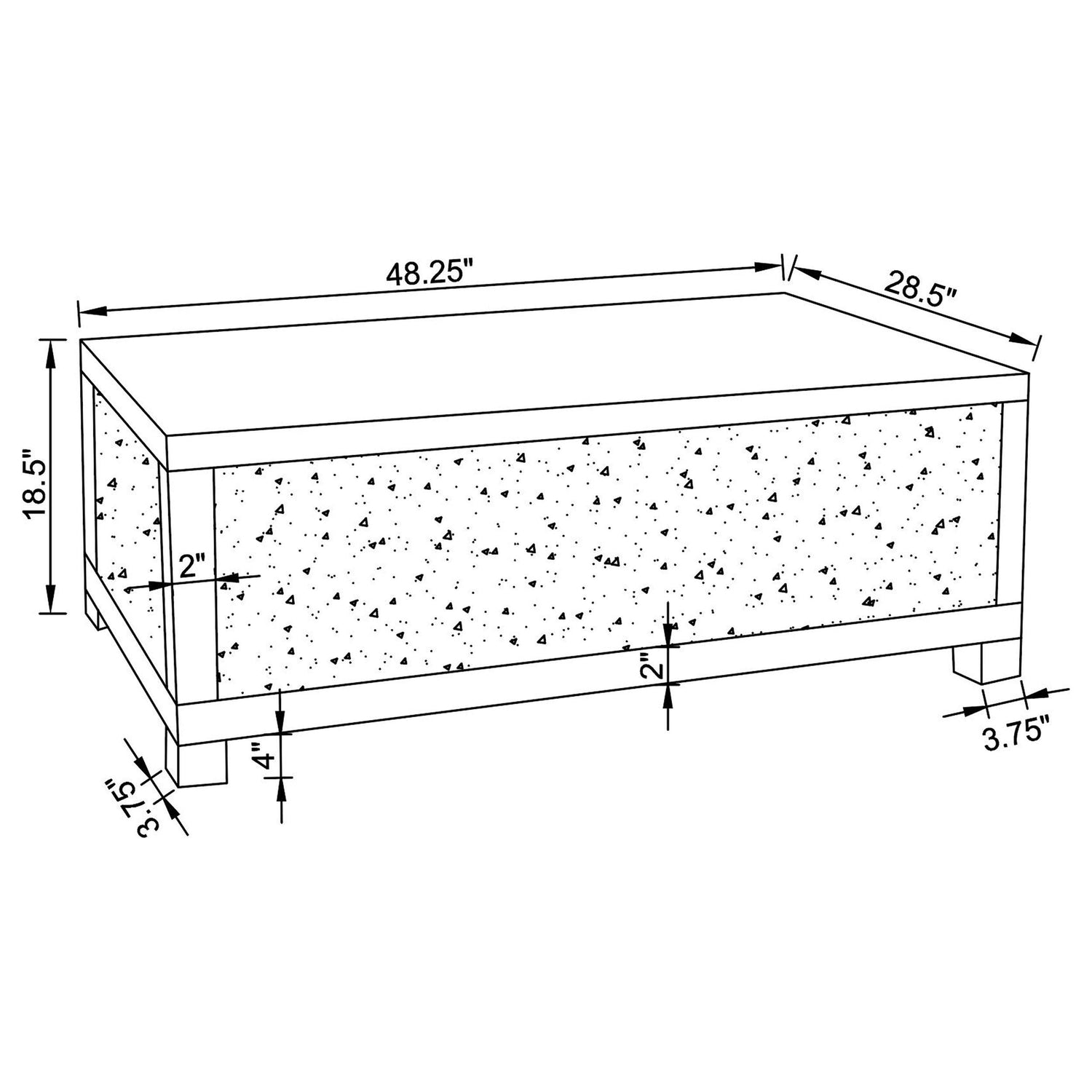 Coffee Table Dimensions: 48.25" W x 28.5" D x 18.5" H & Weight: 108.9 lbs