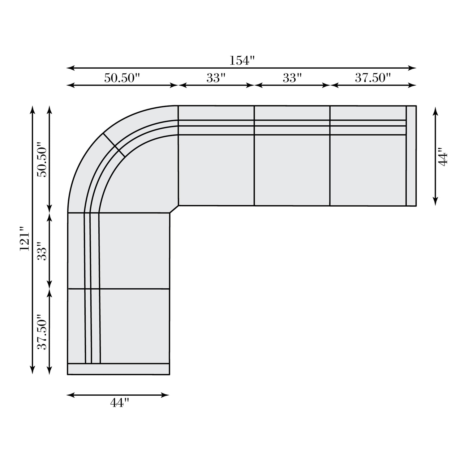 Overall Dimensions (Inches): 154" W x 121" D x 33" H