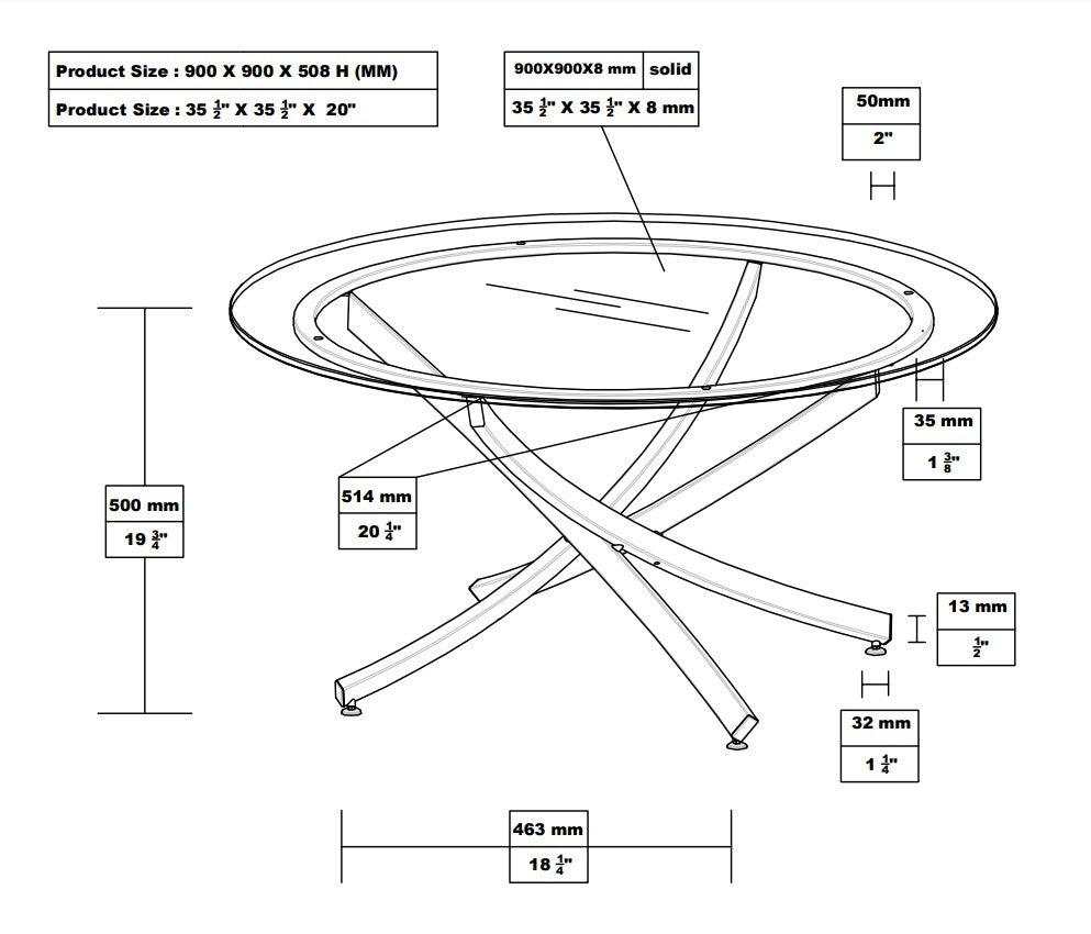 The smooth, sleek design of this coffee table adds casual glamour to any home. Gracefully curved lines of metal crisscross each other pleasingly to form its stylish support. A gorgeous nickel finish enhances its lovely silhouette with a pleasing touch of shine. Its smooth, round top is made tempered glass and boasts a beautiful, black frame around the edge. This table is ideal for relaxing with a hot cup of tea or enjoying a board game with loved ones.