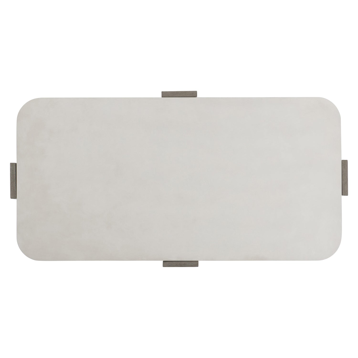 - Quartered white oak wood base in Flint finish with faux concrete table top in Sand Grey finish