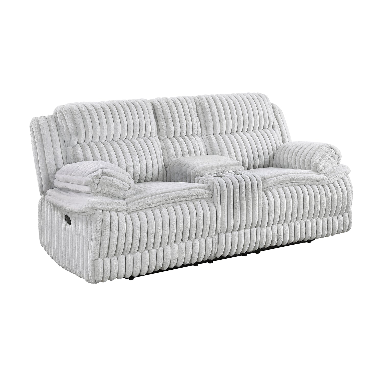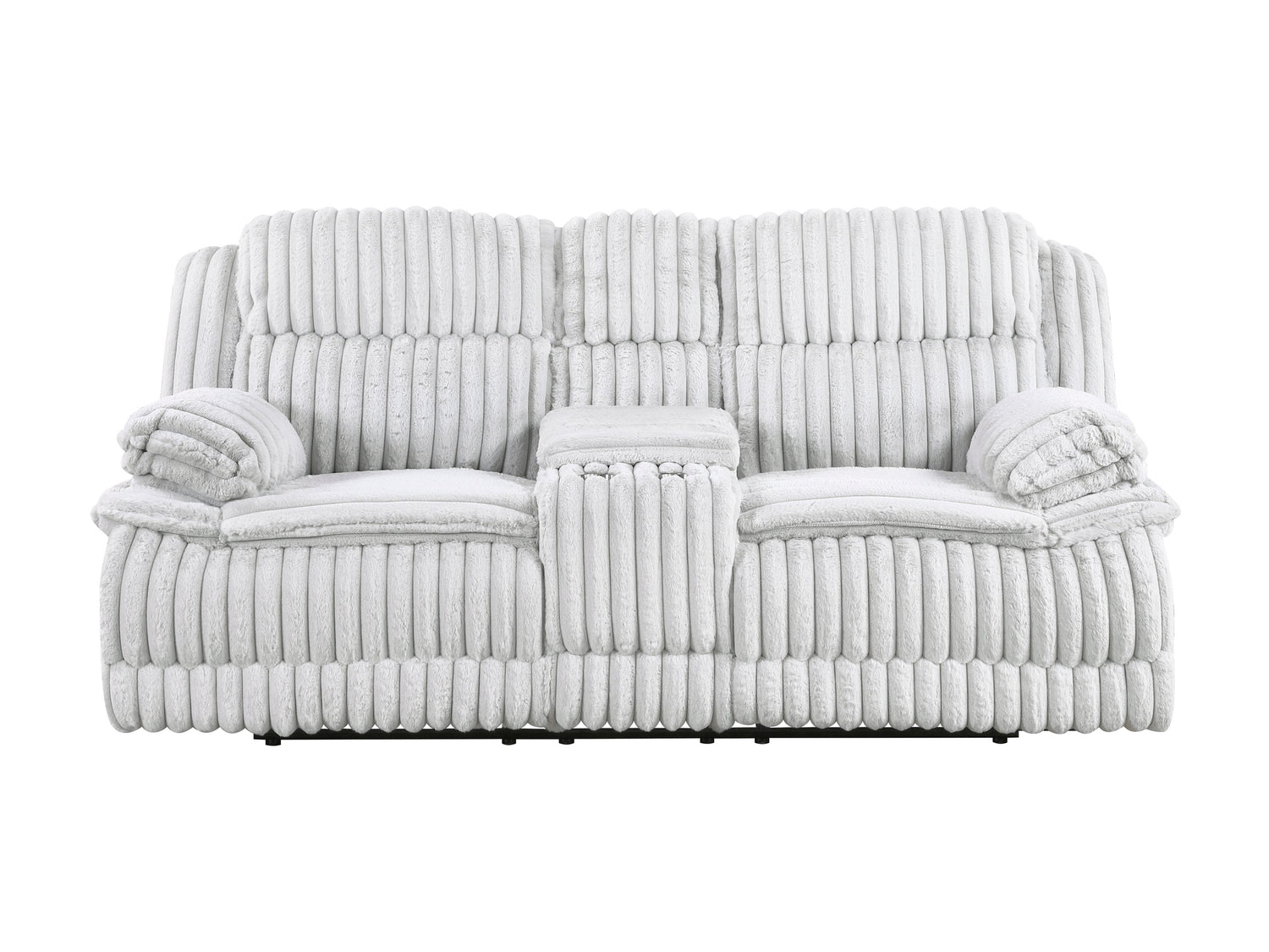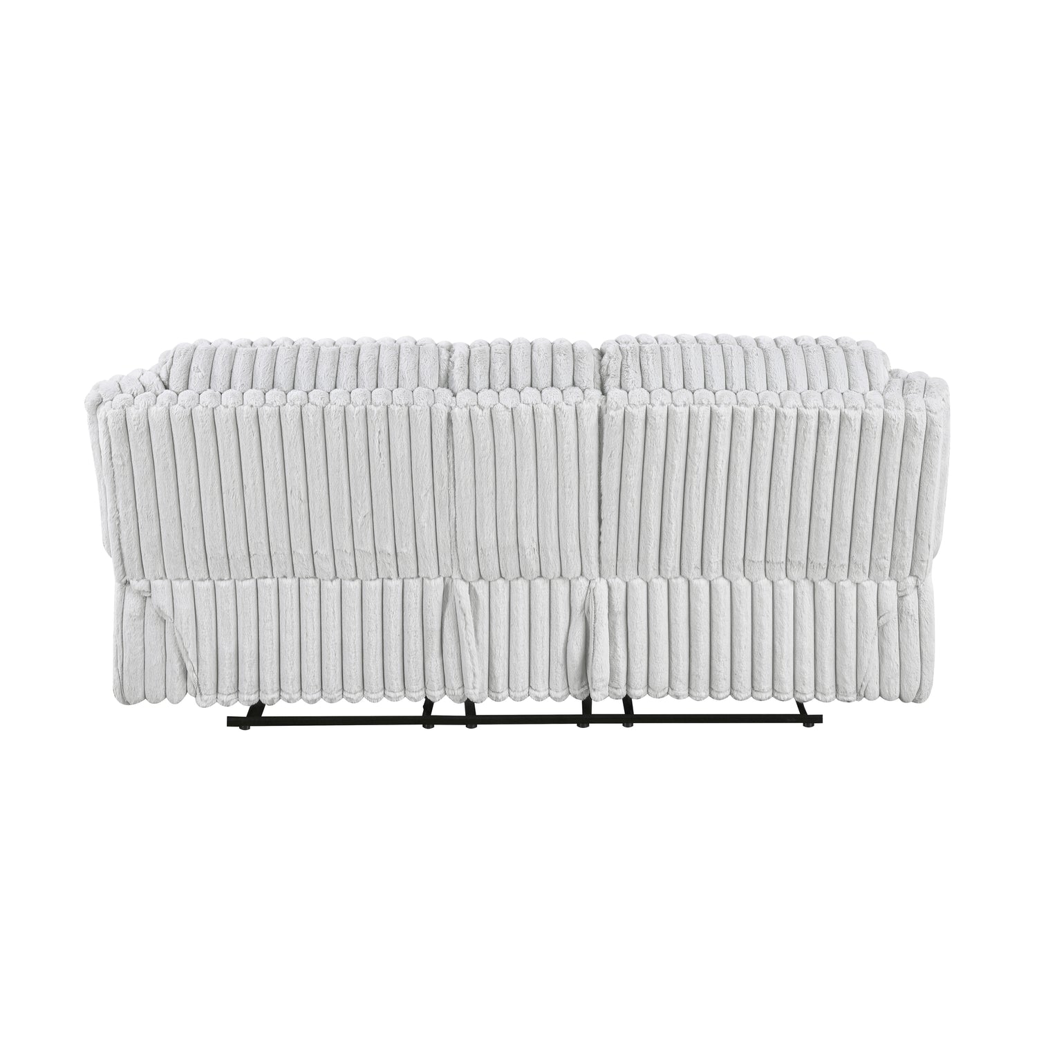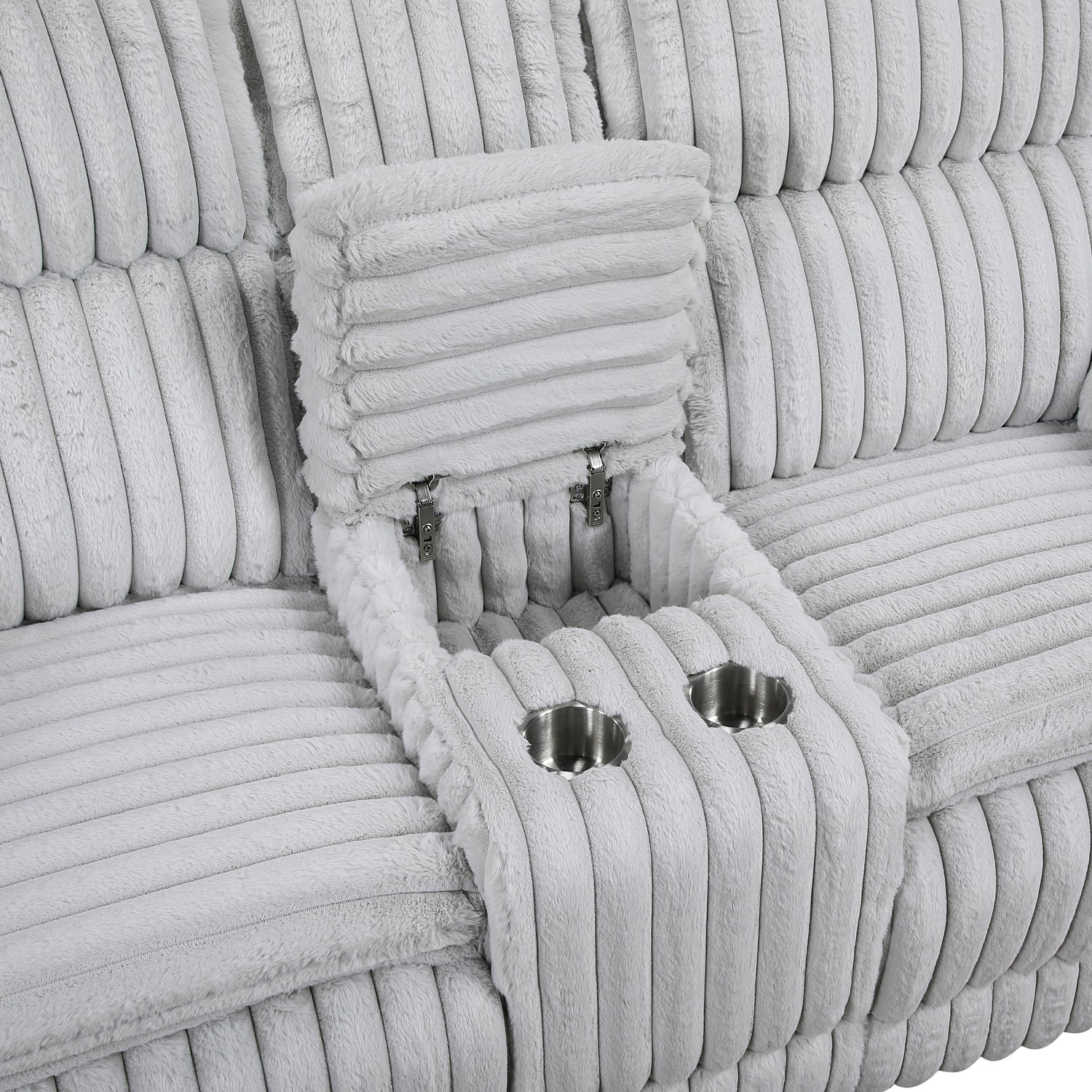Upgrade your relaxation with this dual manual reclining loveseat with center console, designed for ultimate comfort and convenience. Featuring smooth pull-tab reclining seats, plush cushioning, and pillow-top armrests, this loveseat provides exceptional lumbar and full-body support for a cozy and indulgent experience. Upholstered in ultra-soft ribbed corduroy fabric, it adds a trendy yet inviting touch to any living space. The built-in center console includes dual cup holders and a hidden storage compartment, perfect for keeping essentials close at hand during movie nights or lounging. Built with a sturdy metal seat frame and reinforced reclining system, this loveseat ensures long-lasting durability and seamless reclining operation, making it an ideal addition to your living room, home theater, or entertainment space.