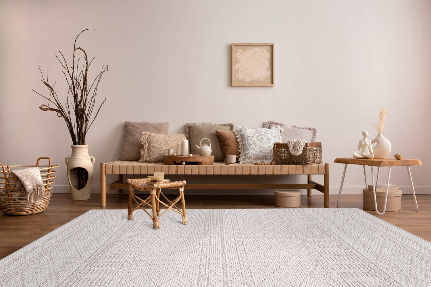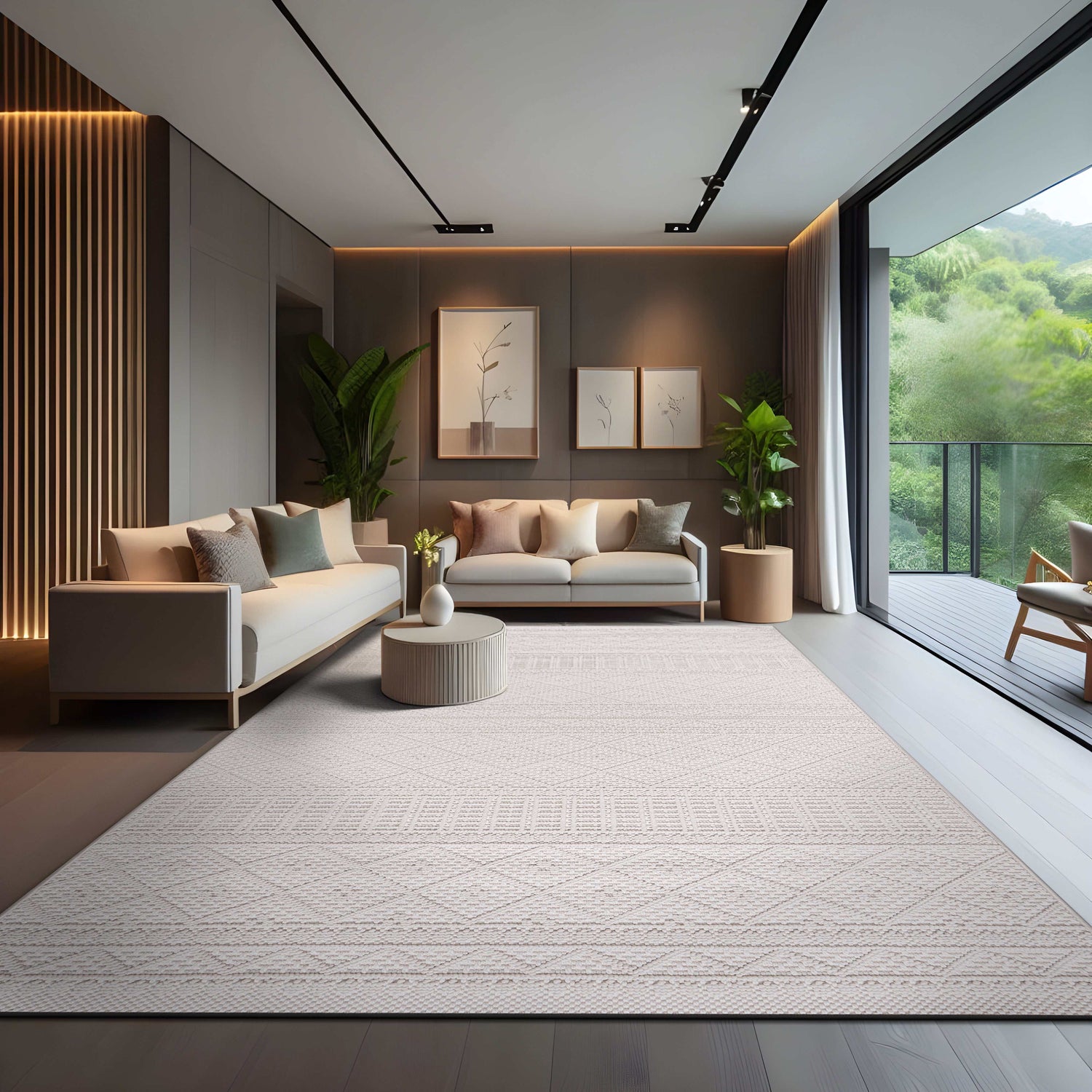 EASY CLEANING: It is made of material resistant to frequent vacuuming and cleaning. You can vacuum with a vacuum cleaner indoors. You can wipe it clean with a slightly damp cloth. Machine-made from stain-resistant and stylish 100% Polyester, this durable area rug is designed for minimal, comfort and style. With a low pile height, this floor rug offers comfort without being too bulky for your pets, cats, dogs, guests, and children.