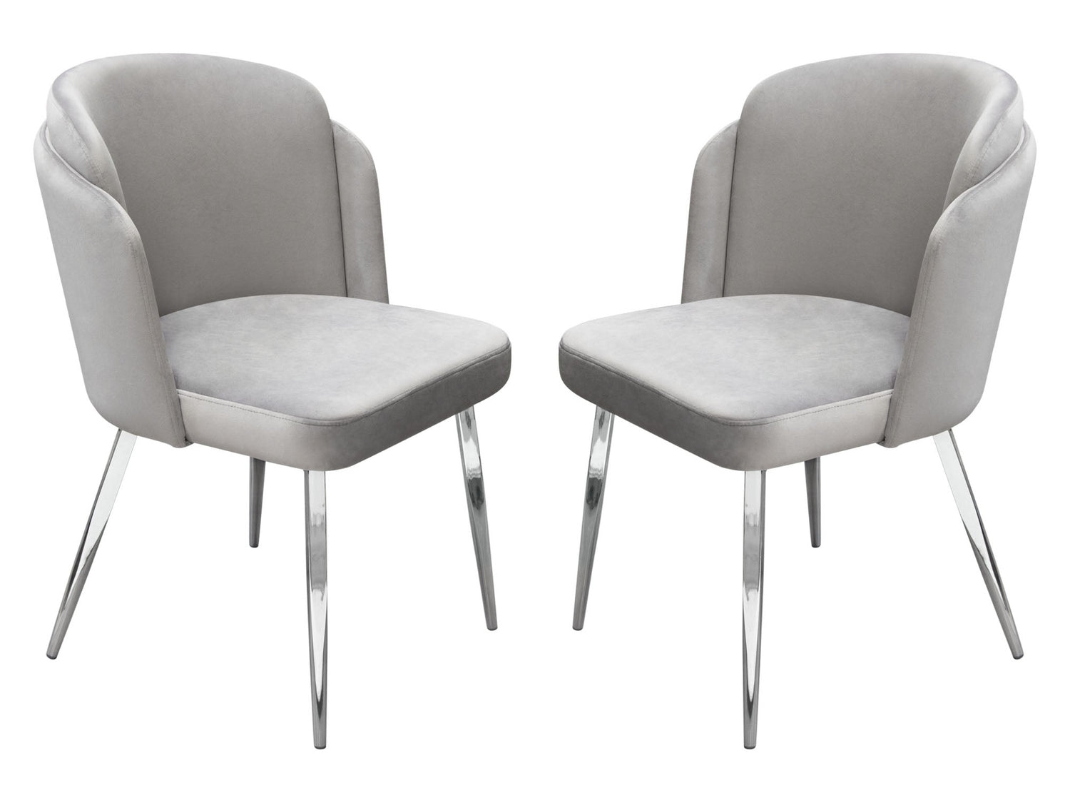 - Elevate your dining experience and aesthetic with the soft grey velvet Grace Chairs.