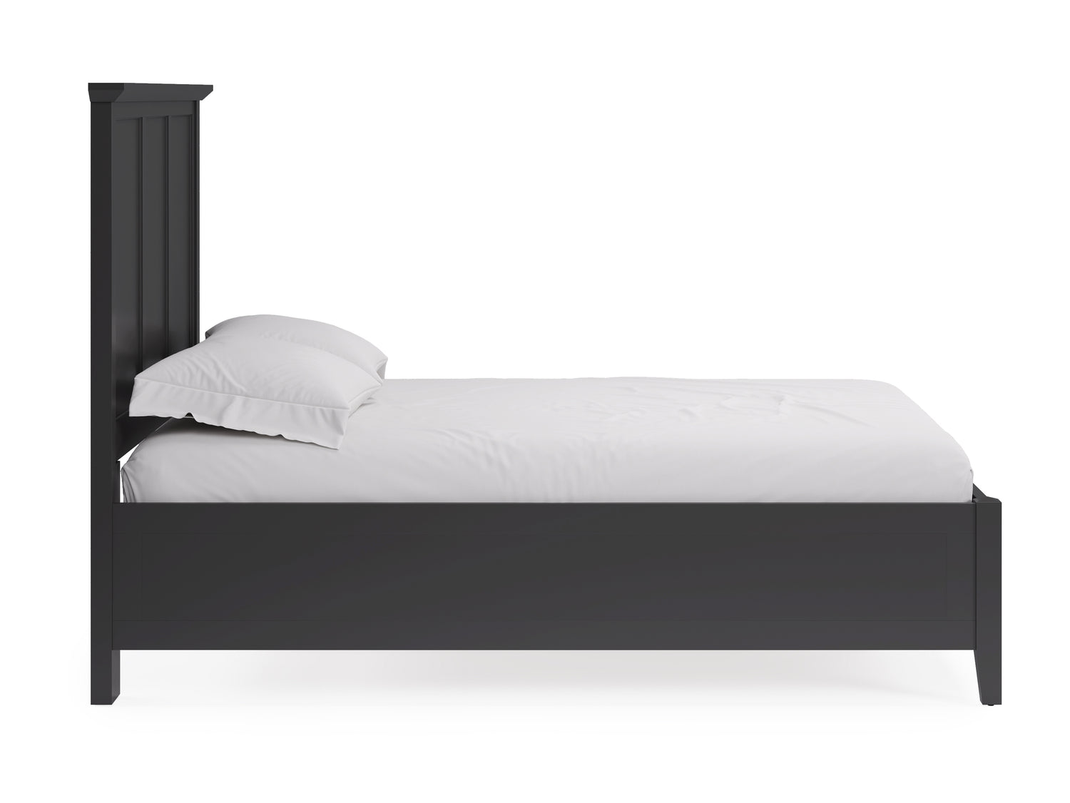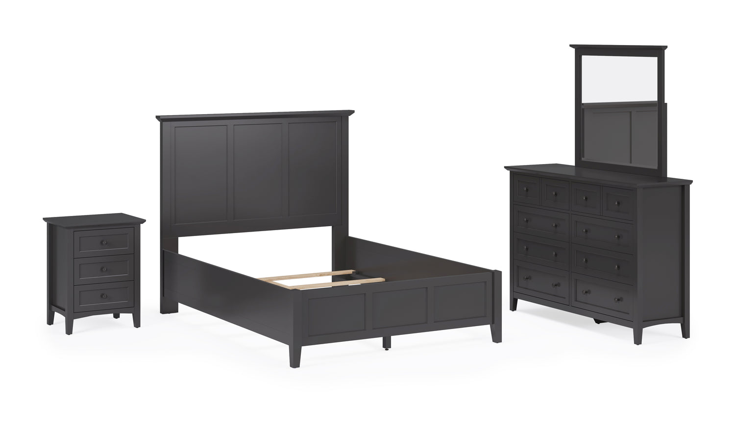 - Raven finish is a smooth, low-sheen, modern black with a hint of gray with little to no visible wood grain or surface texture
