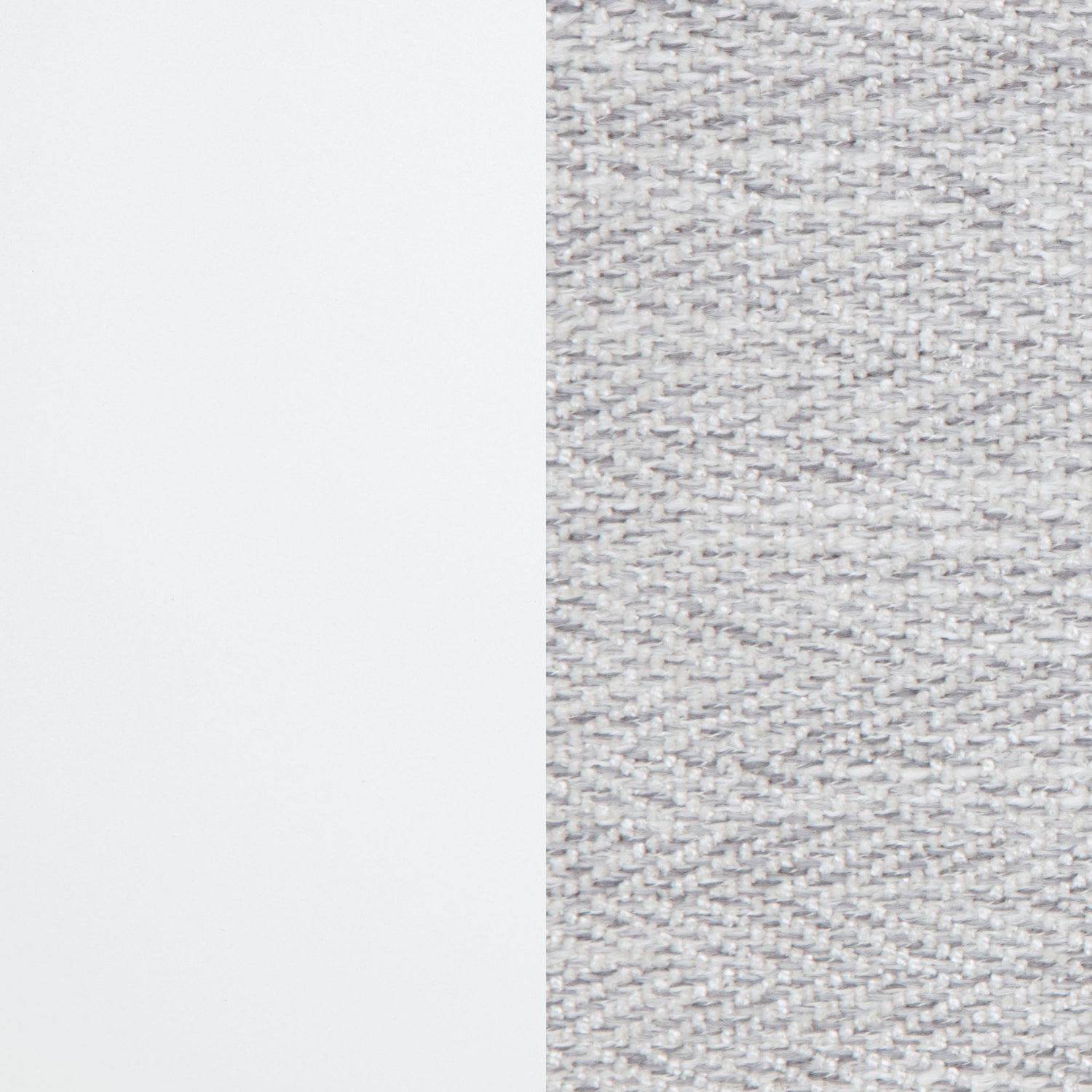 - White finish outlines light grey fabric headboard and footboard for clean structure,