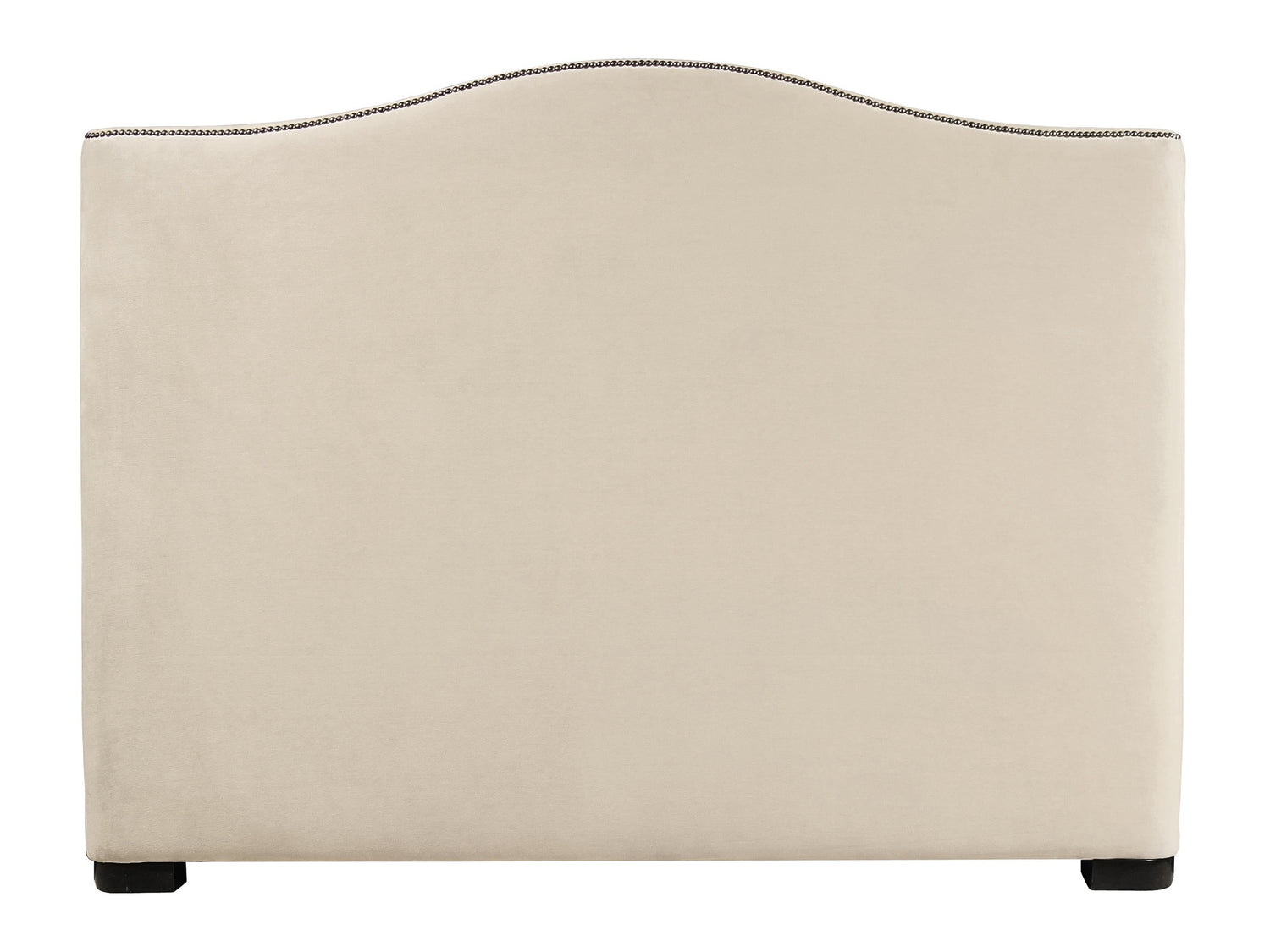 - Fully upholstered camelback headboard with nailhead trim