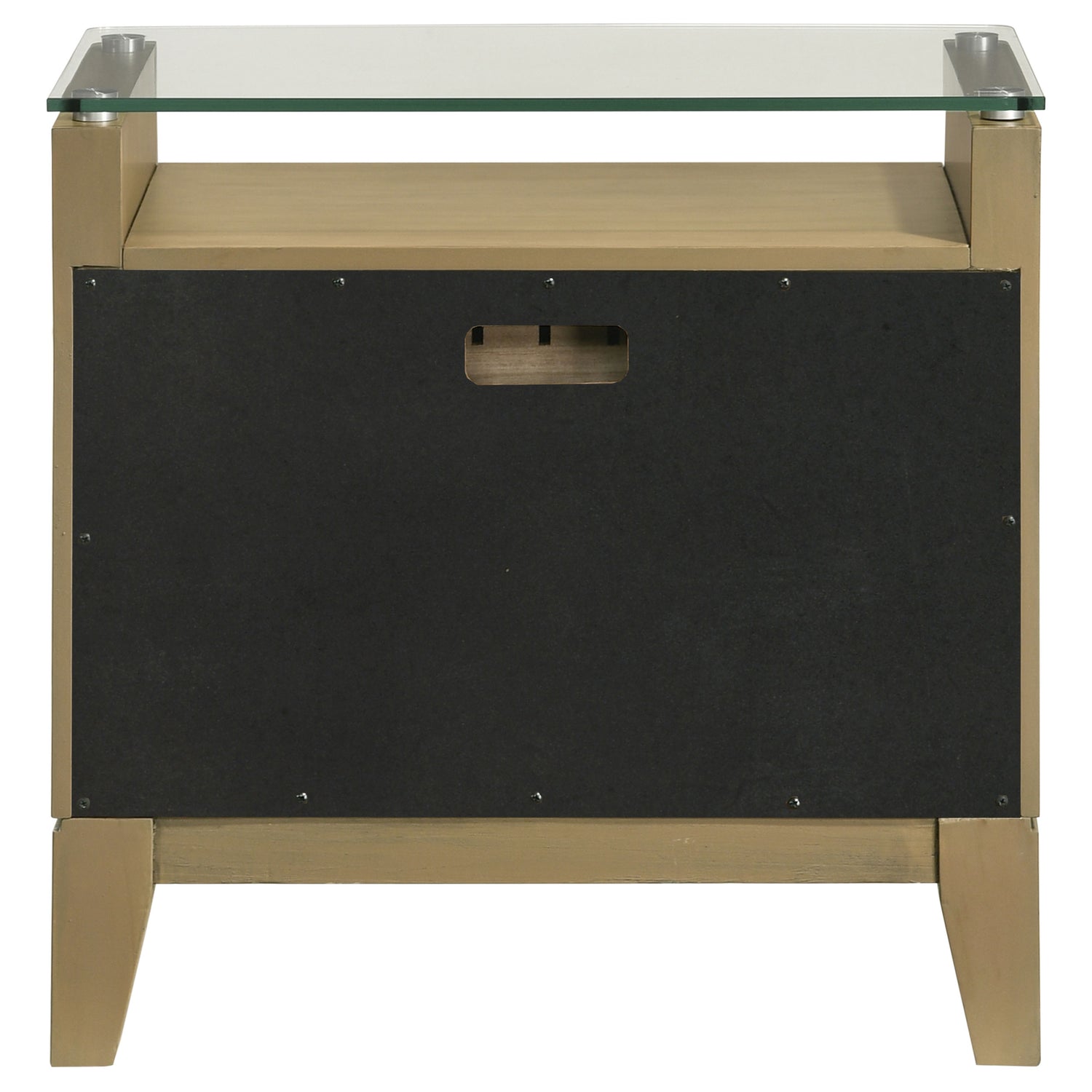 - Includes: One (1) nightstand- two drawer nightstand with cord management in the top drawer