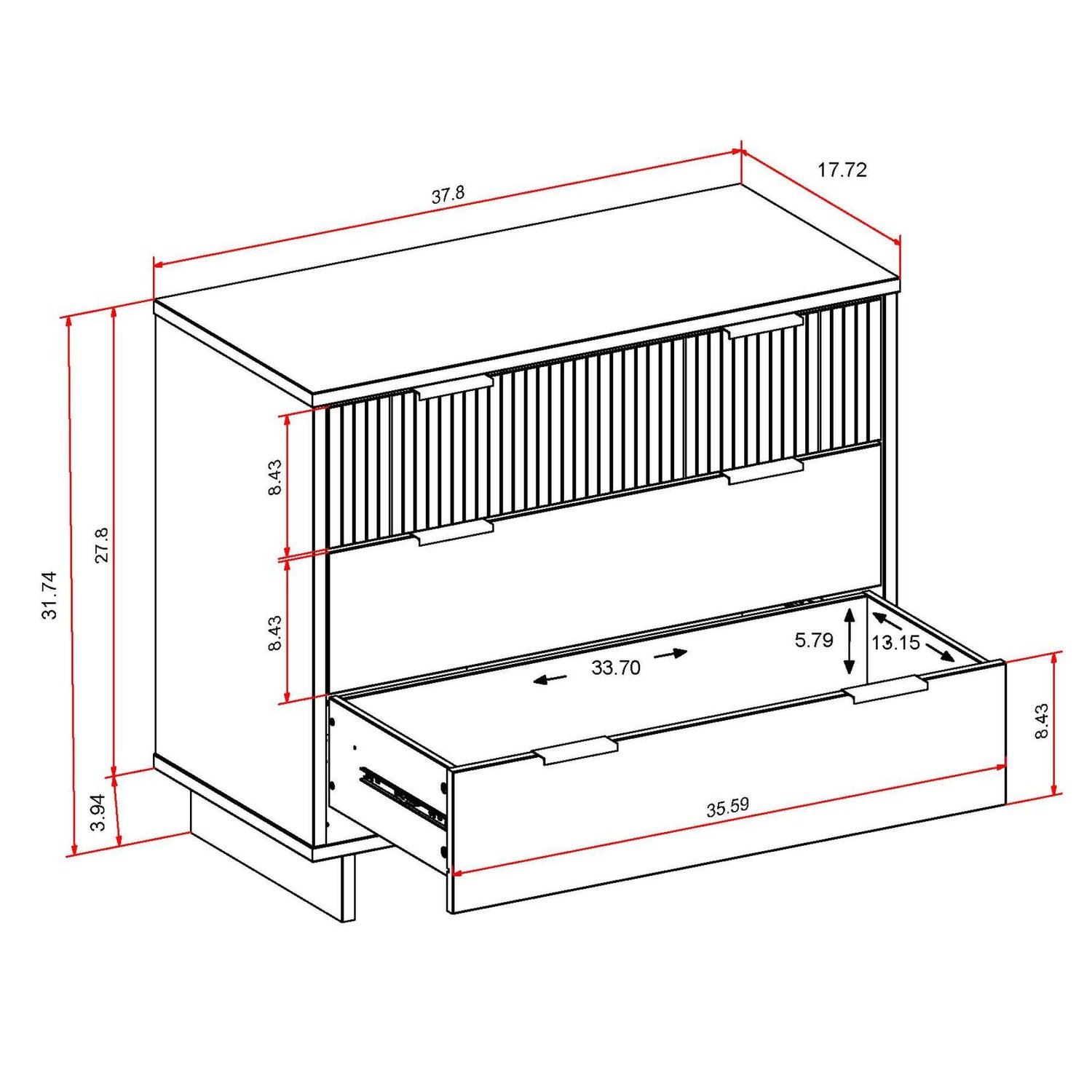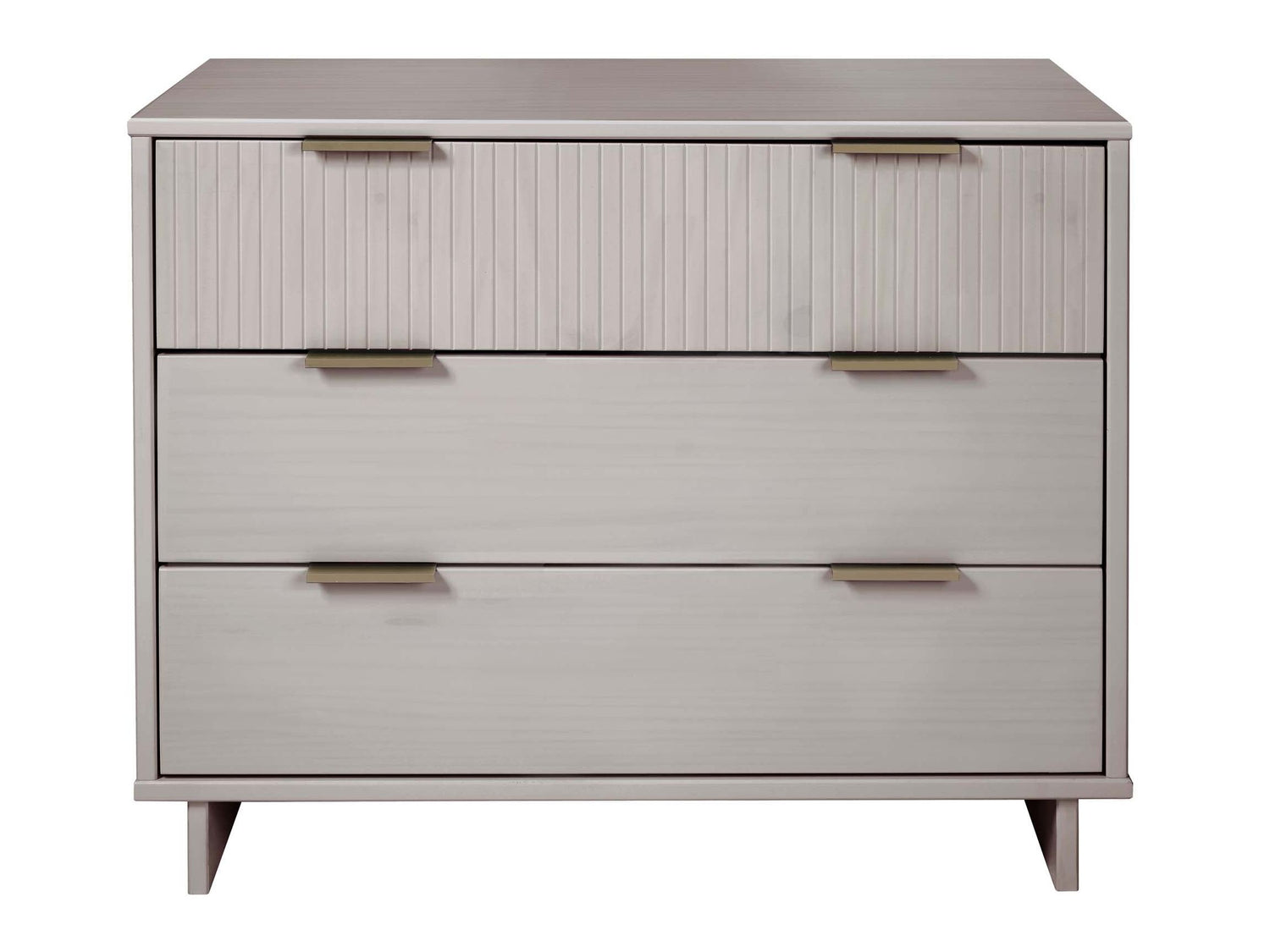 - Includes 3 Full Extension Drawers with Top Drawer Designed in Vertical Textured Ribbed Lines Made from Solid Wood.