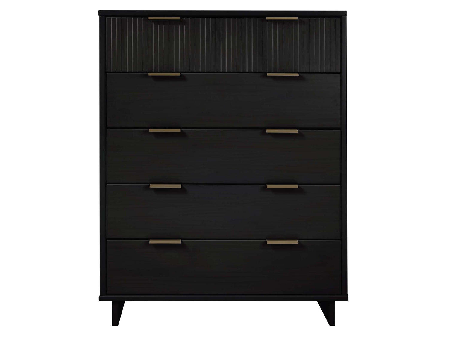 - Includes 5 Full Extension Drawers with Top Drawer Designed in Vertical Textured Ribbed Lines Made from Solid Wood.