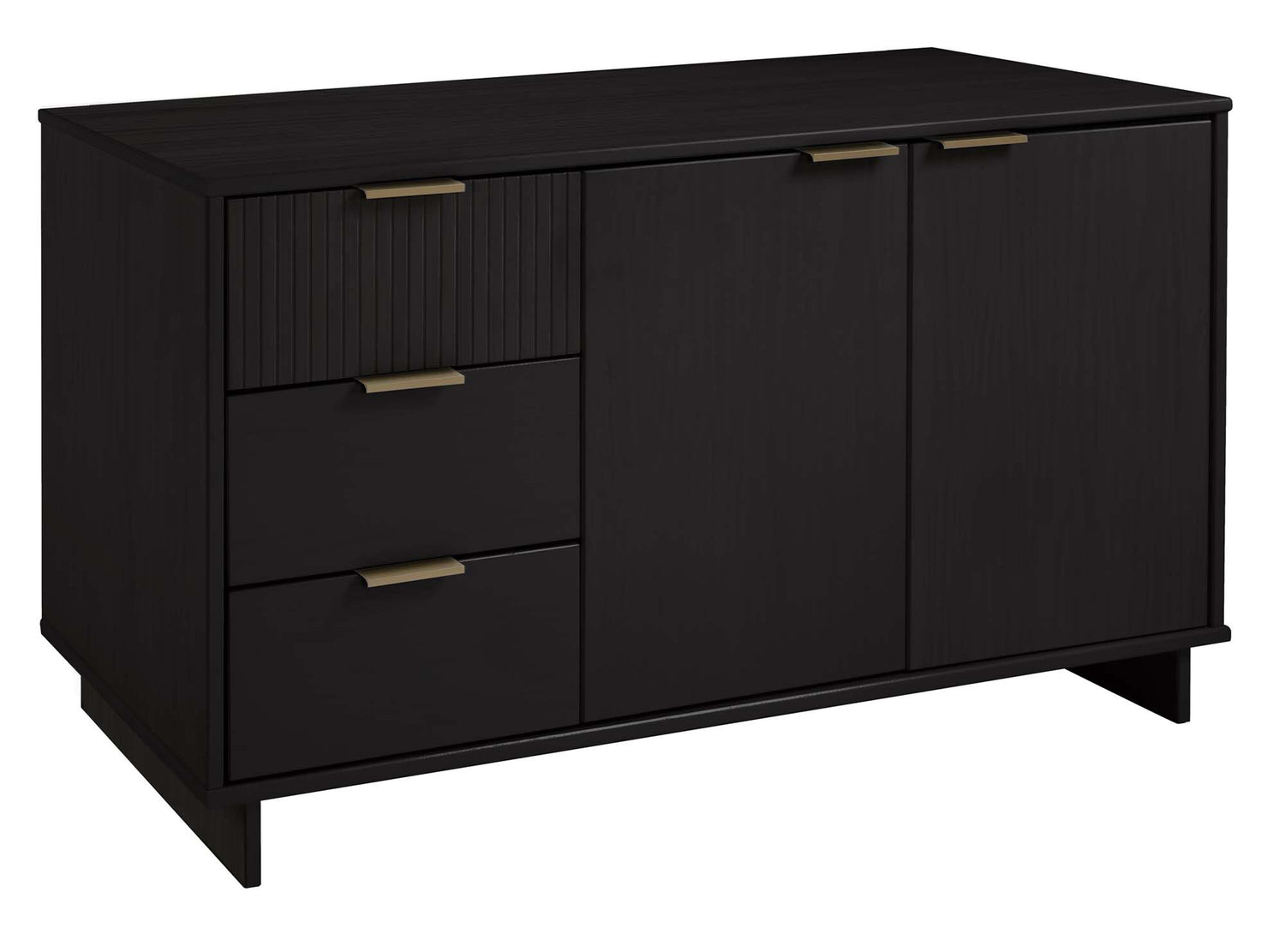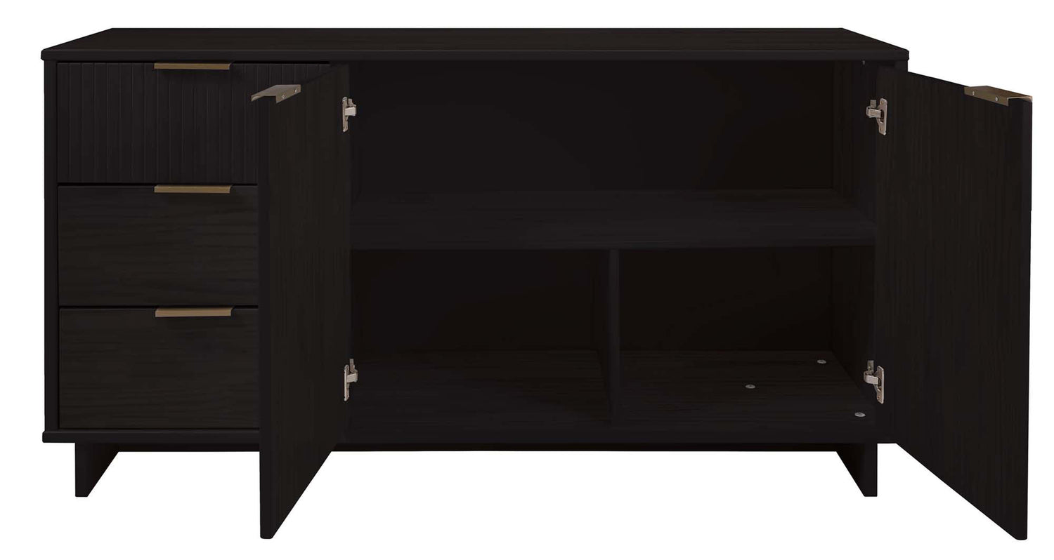 - Includes 3 Full Extension Drawers with Top Drawer Designed in Vertical Textured Ribbed Lines Made from Solid Wood and 3 Concealed Shelves.