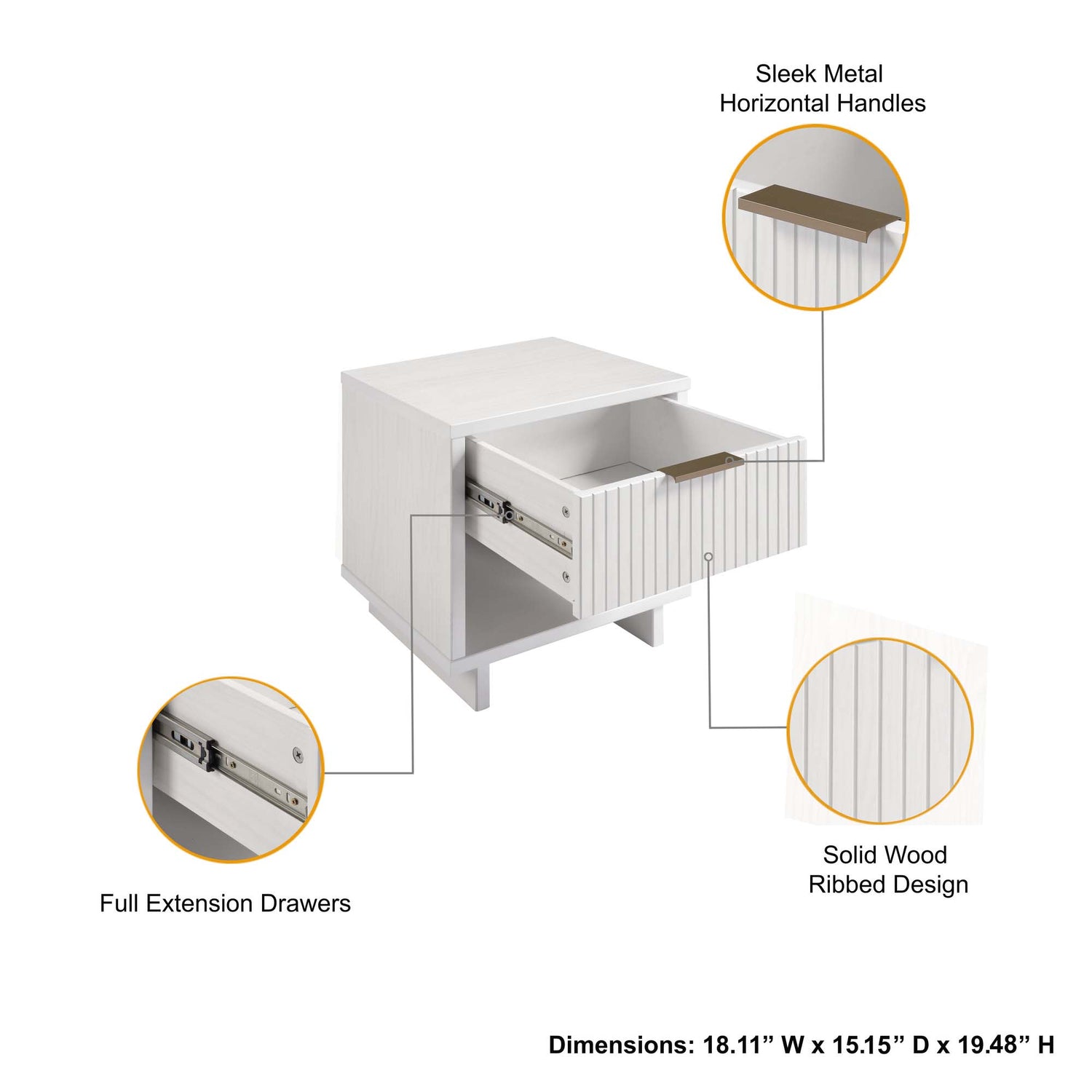 - Includes 1 Full Extension Drawers with Top Drawer Designed in Vertical Textured Ribbed Lines Made from Solid Wood.