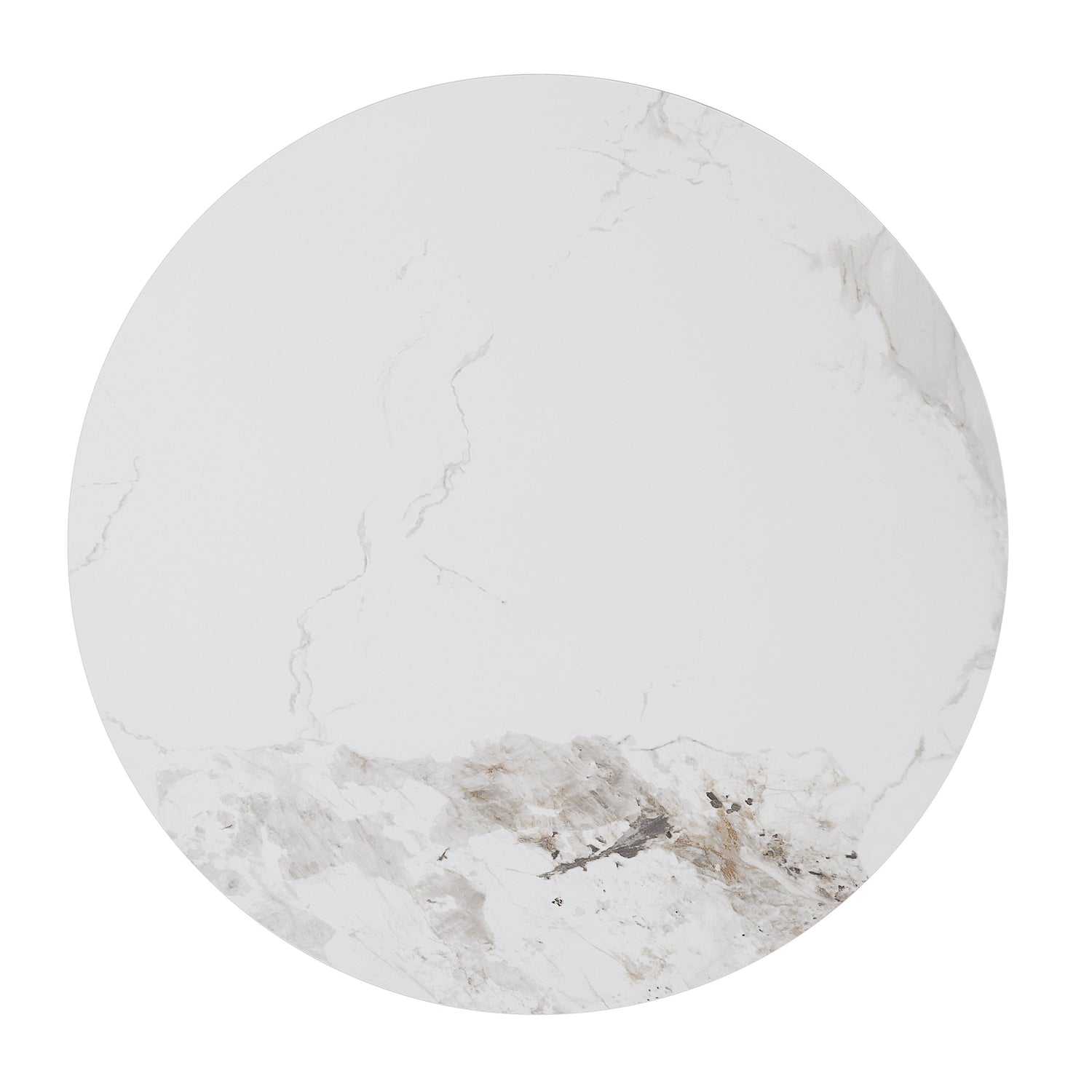 An elegant addition to your home’s living room is the Greer Collection. The conical base and tabletop of the end table creates an hour-glass inspired pairing joined by a gold-tone stainless steel metal band, its subtle metallic hue the perfect complement to the sintered stone tabletop, and the base’s oak finish.