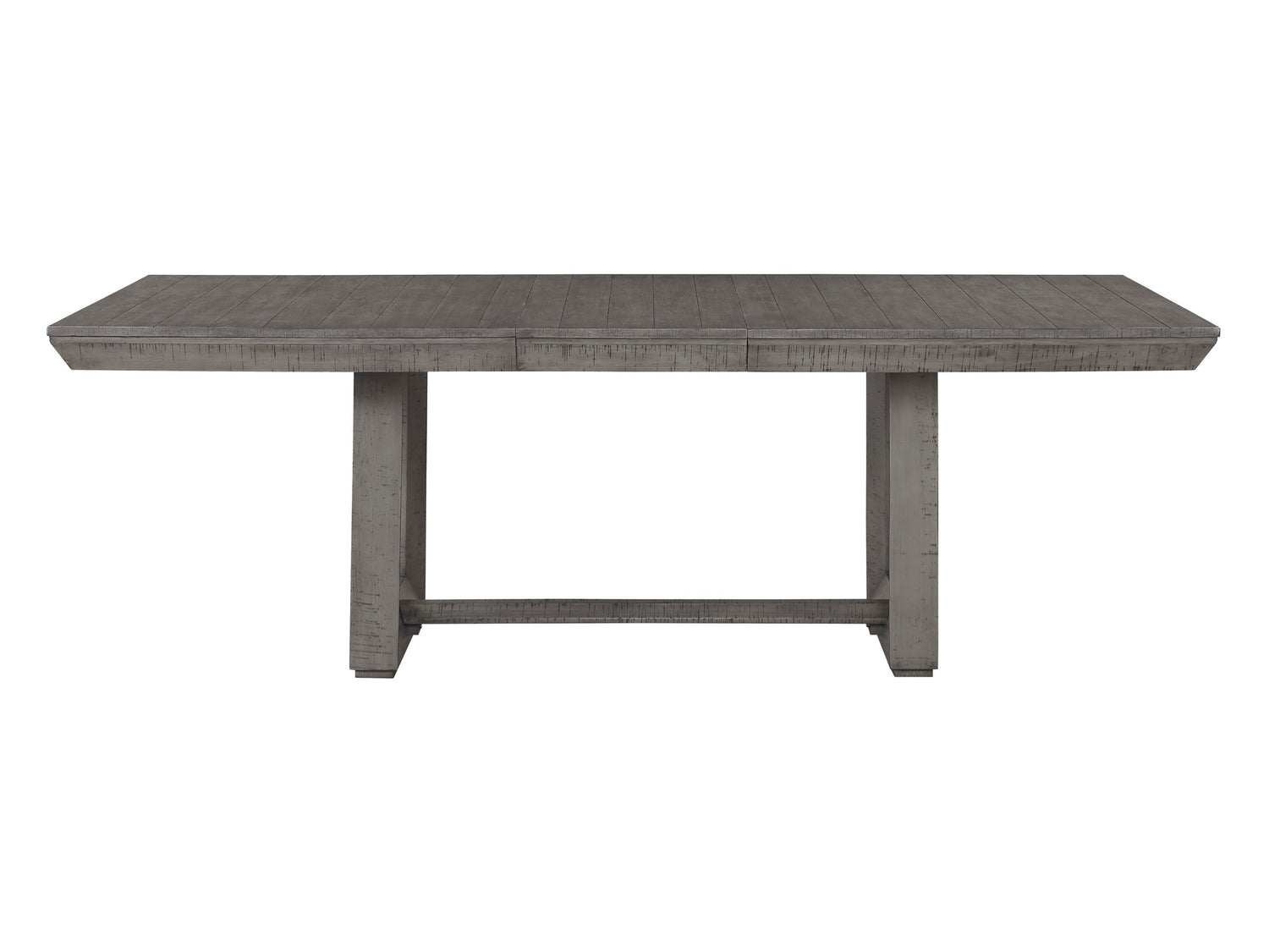 At the intersection of modern and rustic design, the Gresham Collection brings you to a full stop. Clean lines are paired with the natural beauty of acacia veneer, while a gray finish lends neutral versatility to the décor of your casual dining room. The rustic look of the plank tabletop is interrupted by the modern lines of the table apron’s angled edge.