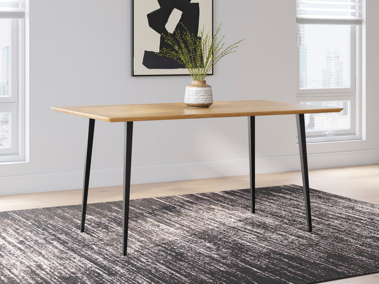 Small spaces don’t mean you have to sacrifice big style. This table sets the stage for casually cool dining. The welcoming light wood-tone top beautifully goes with the flow, while matte black metal legs add a layer of urban industrial flair. Merging everyday function with inviting design, it’s a simply chic addition to your dining room.
