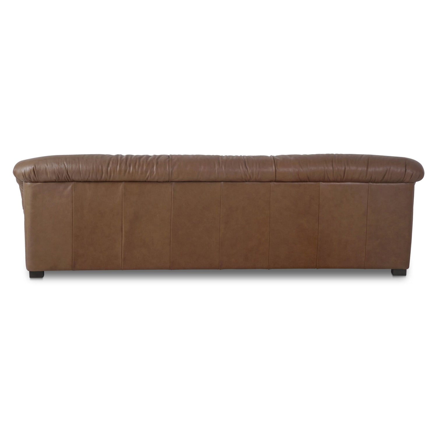 - Top grain leather upholstery with soft feather, fiber & foam fill