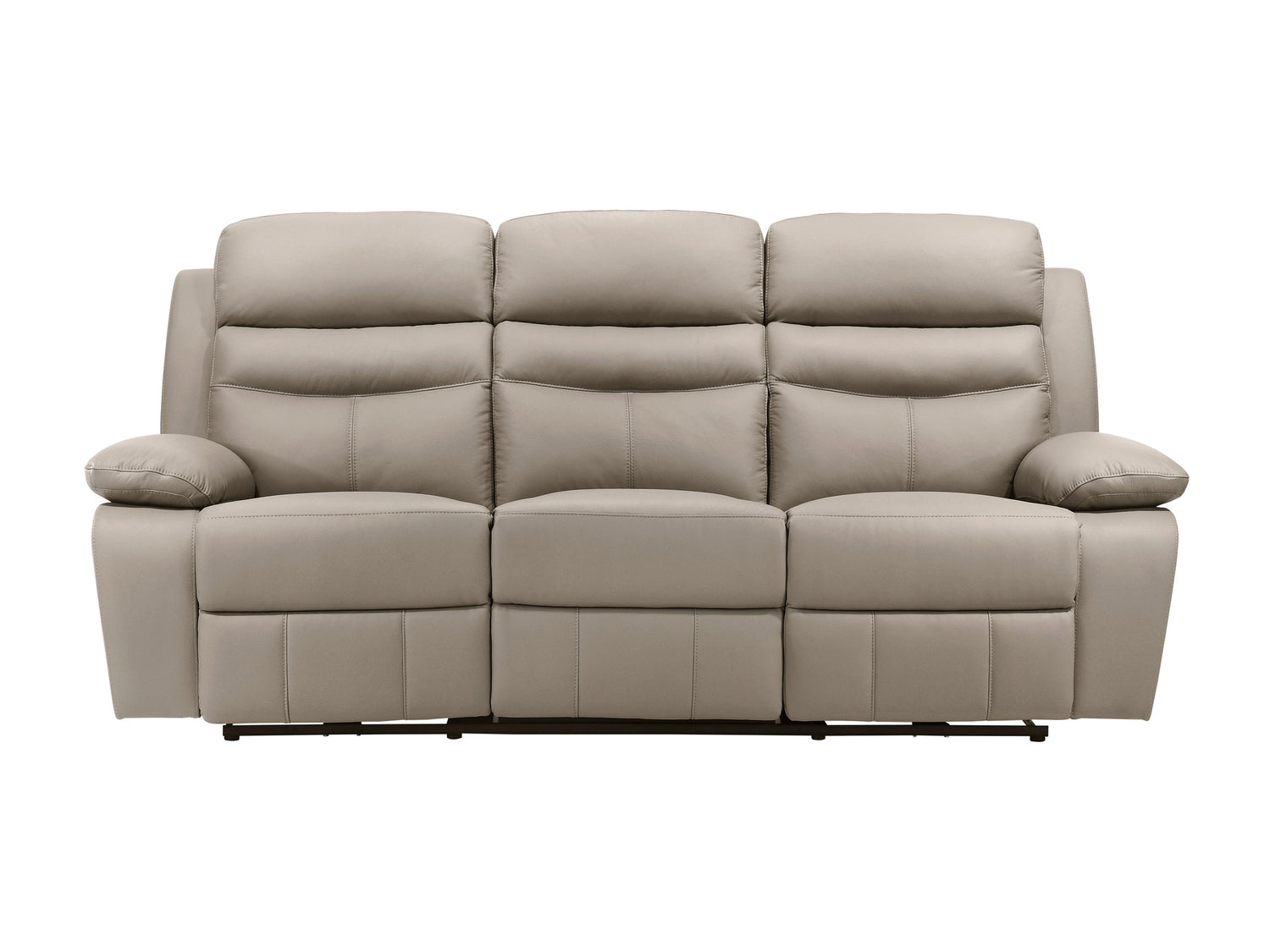 The Hancock Collection’s versatile look, paired with the feel of top grain leather and power reclining, will help to create a welcoming and comfortable space within your home. The dual reclining ends of the sofa are engaged with a touch to the side mounted power controls. The subtle modern frame of the sofa is covered in 100 percent top grain leather where the body touches, with faux leather covering the remaining areas, its latte hue complementing your home’s décor.
