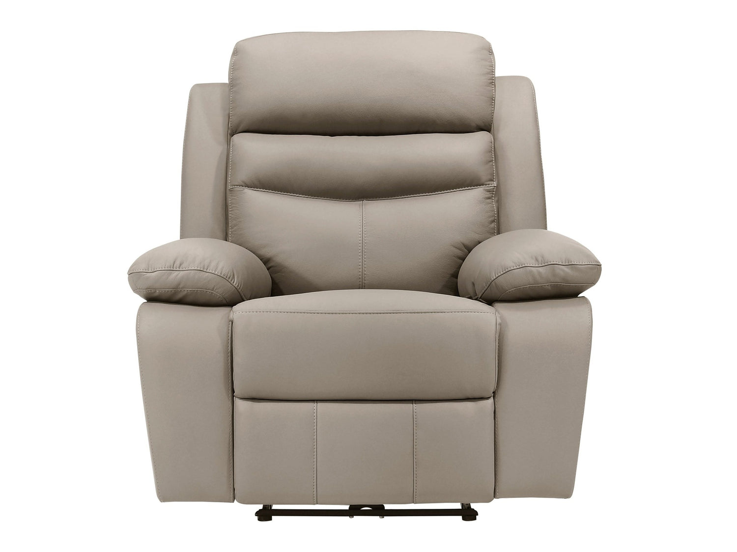 The Hancock Collection’s versatile look, paired with the feel of top grain leather and power reclining, will help to create a welcoming and comfortable space within your home. The reclining chair is engaged with a touch to the side mounted power control. The subtle modern frame of the is covered in 100 percent top grain leather where the body touches, with faux leather covering the remaining areas, its latte hue complementing your home’s décor.