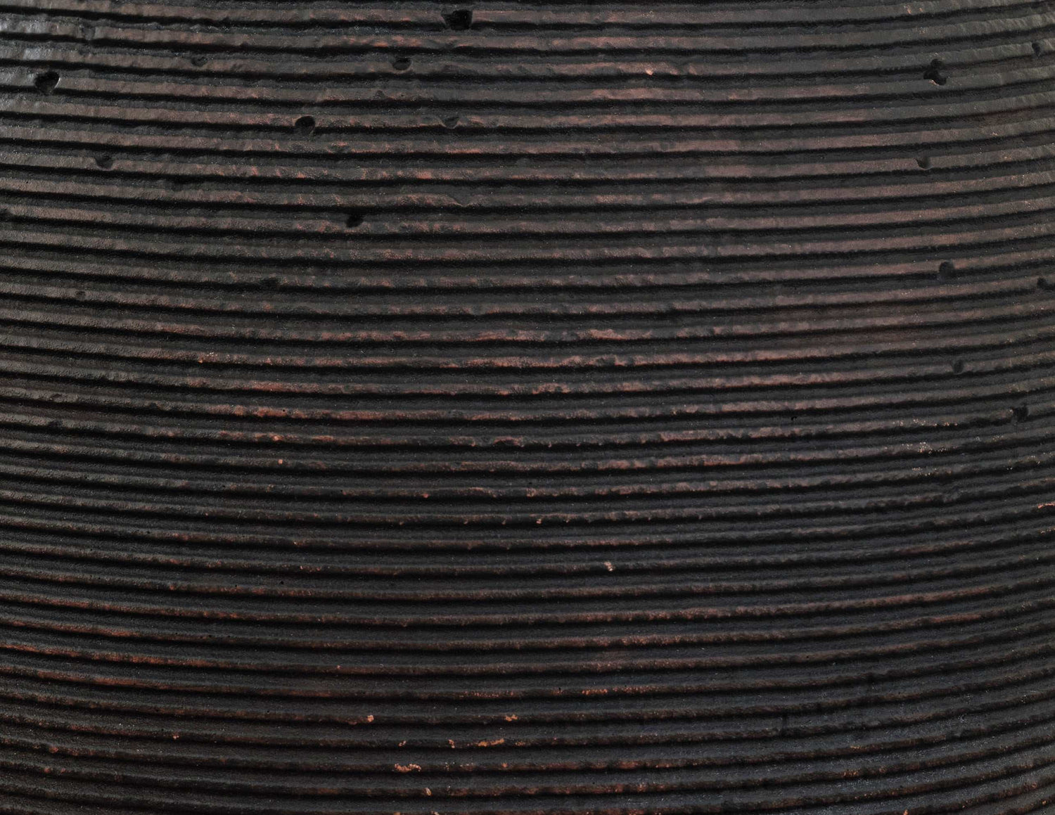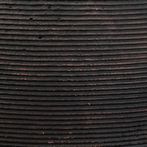Ribbed textural rings give this vase a wonderful artisanal quality. An antiqued brown finish catches the eye, drawing attention to this elegantly earthy centerpiece.