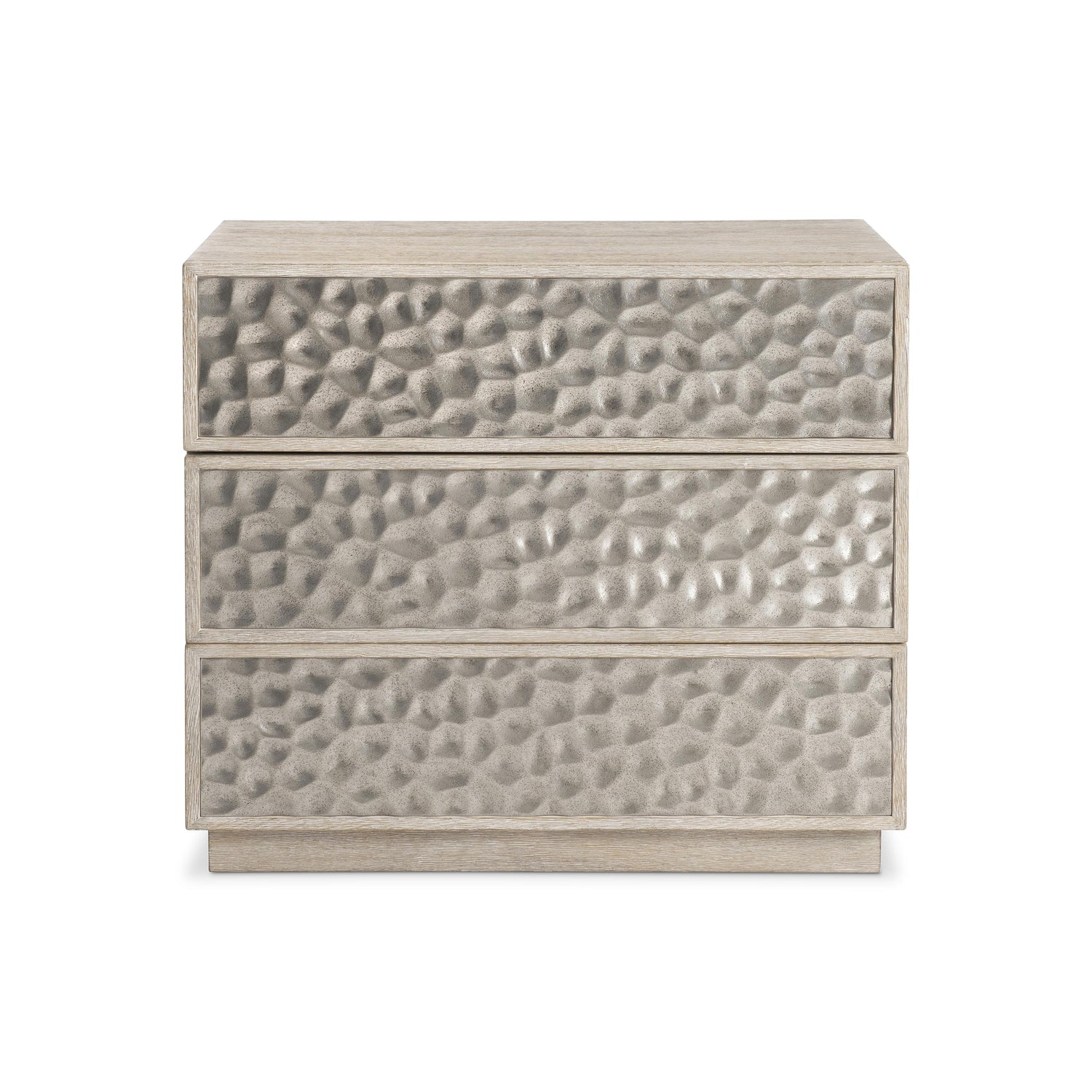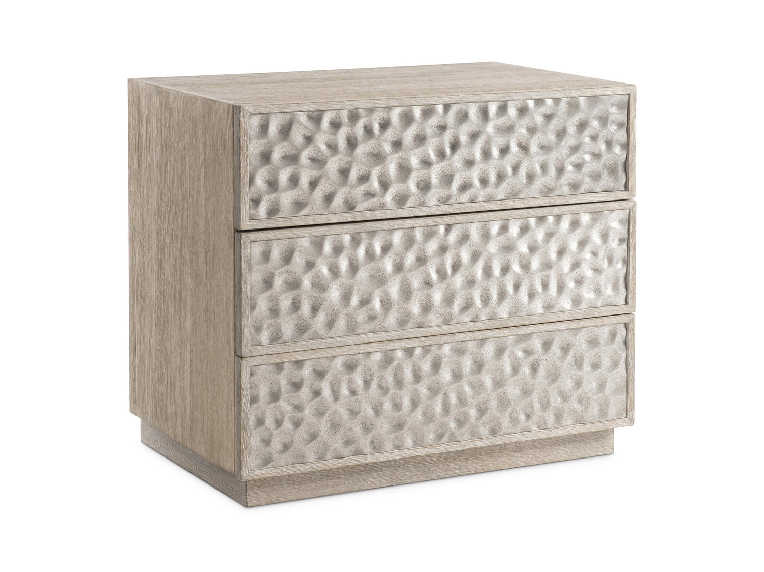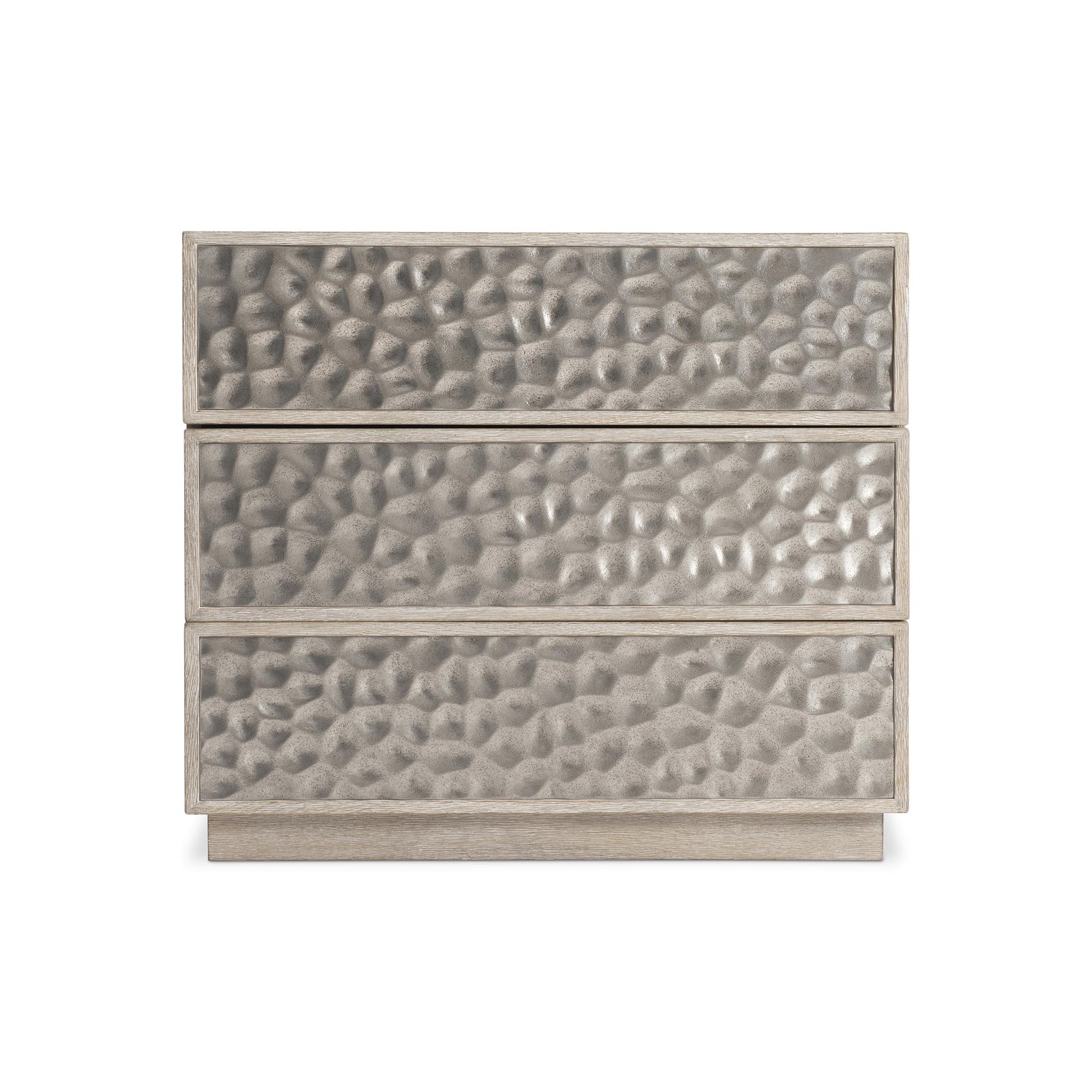 - White oak case in Trevin finish with hammered cast aluminum inlays in Graphite finish on drawer fronts