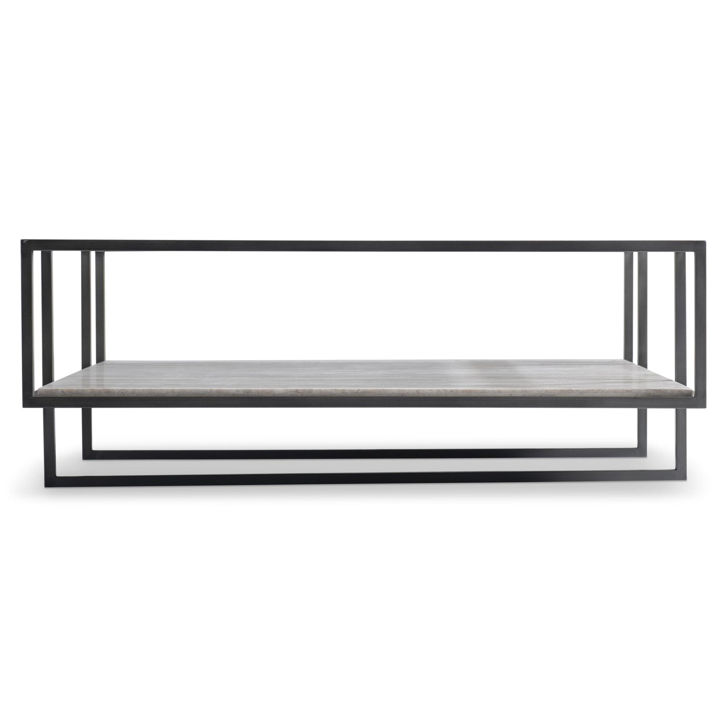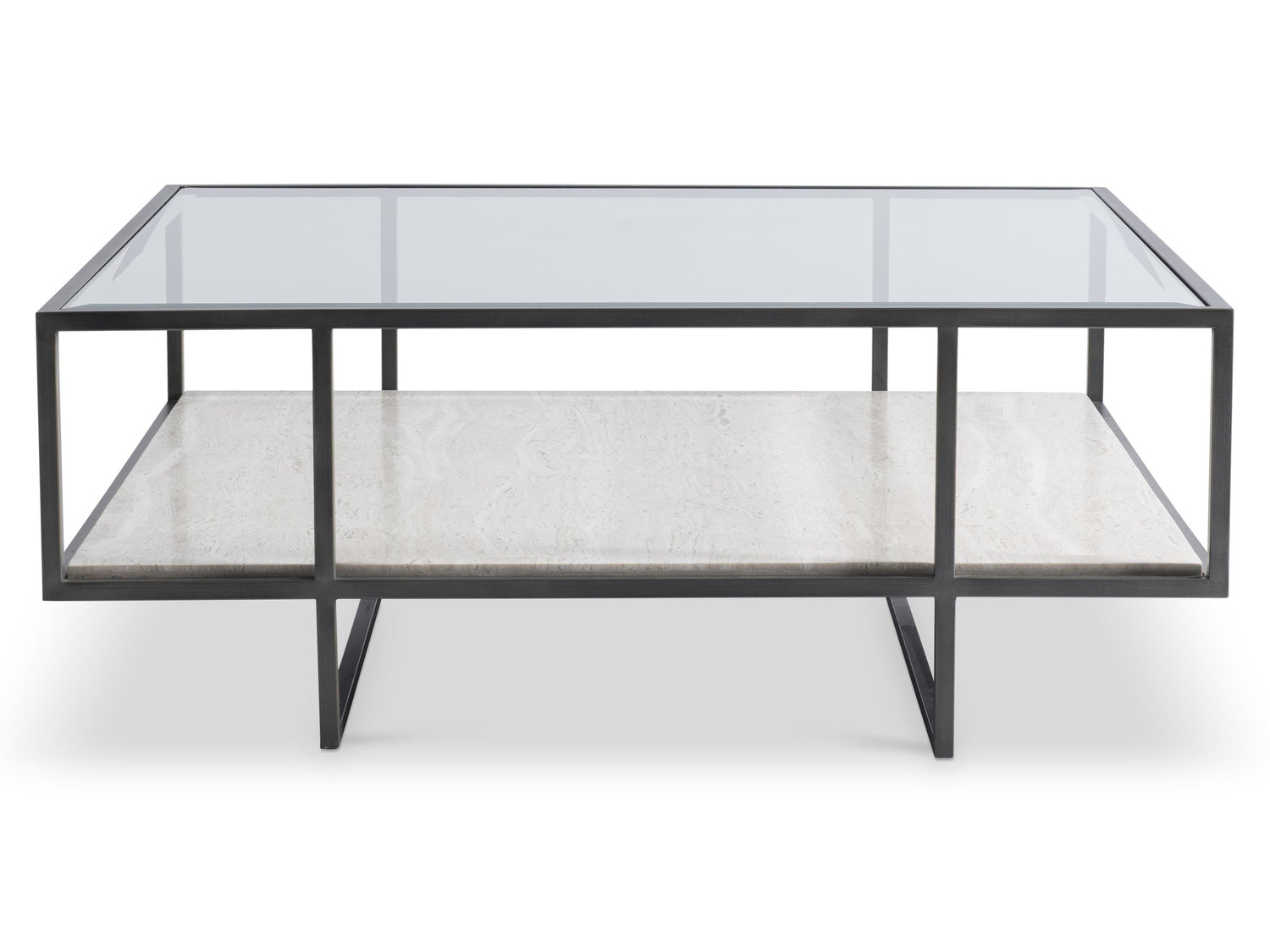 Harlow Glass/White Travertine/Oil-Rubbed Bronze Cocktail Table