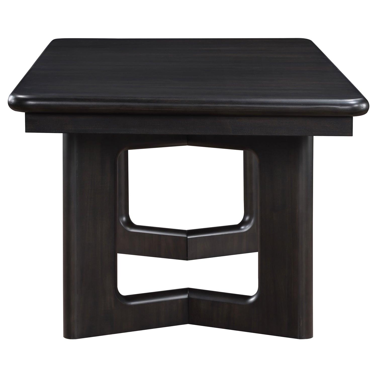 - Table features open frame legs with an angular detail to create a sense of movement and artistry