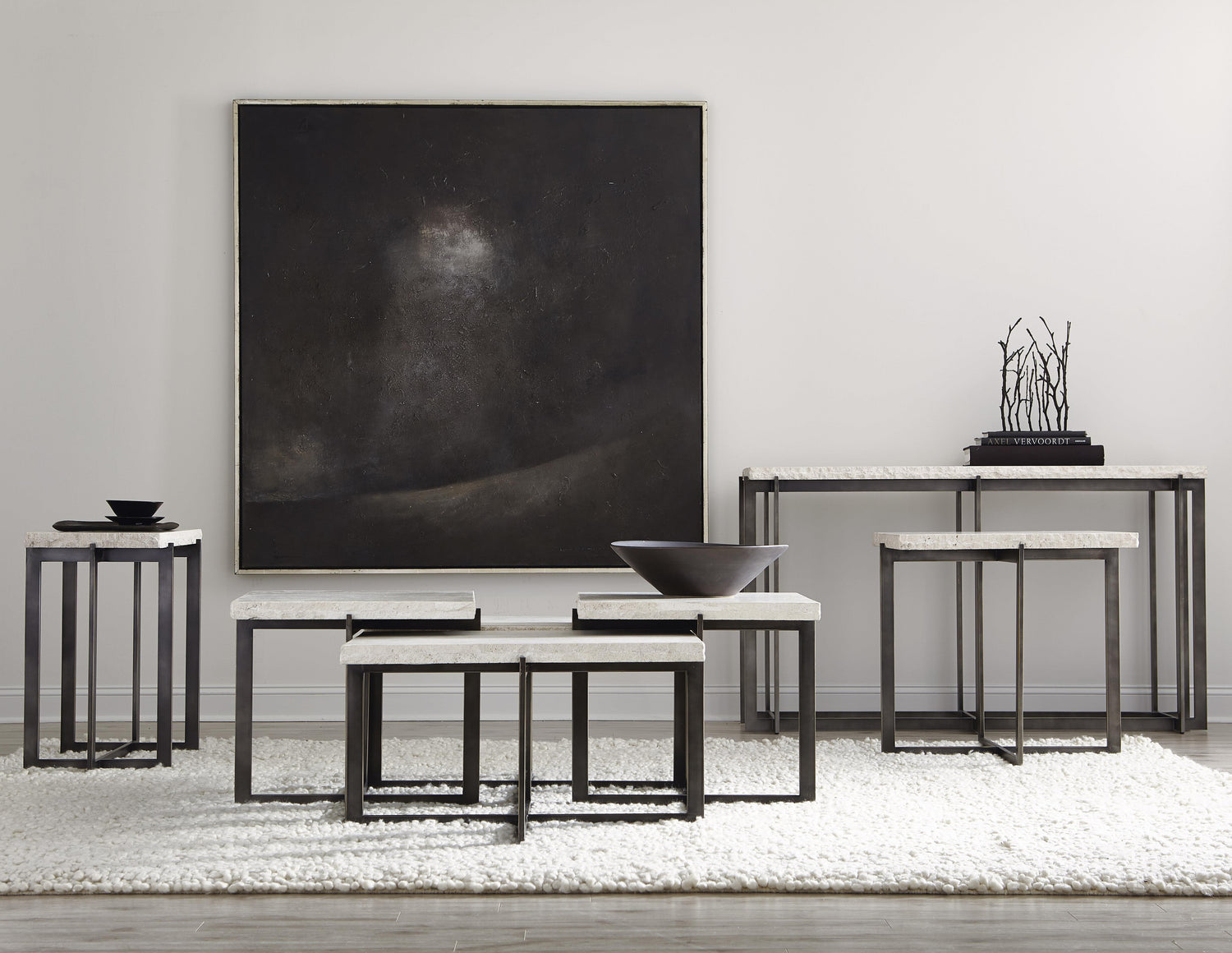 Hathaway White Travertine/Oil-Rubbed Bronze Console Table