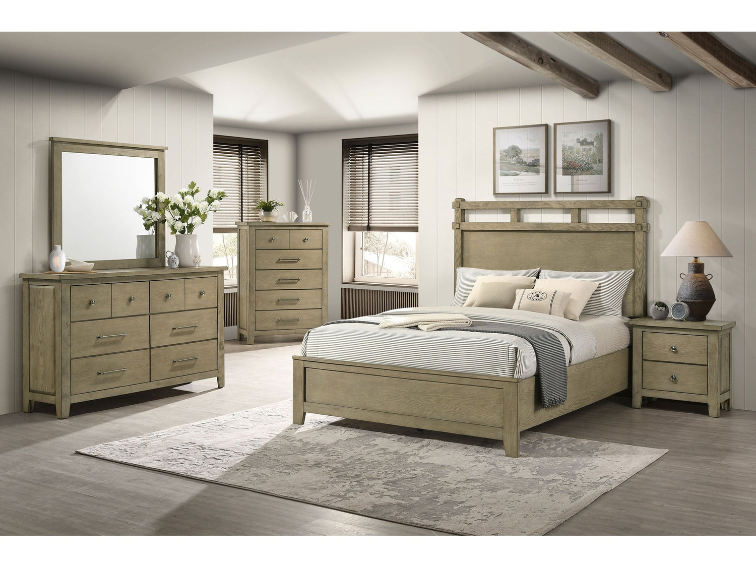 - Includes: One (1) eastern king bed, one (1) nightstand, one (1) dresser, one (1) dresser mirror, and one (1) chest of drawers