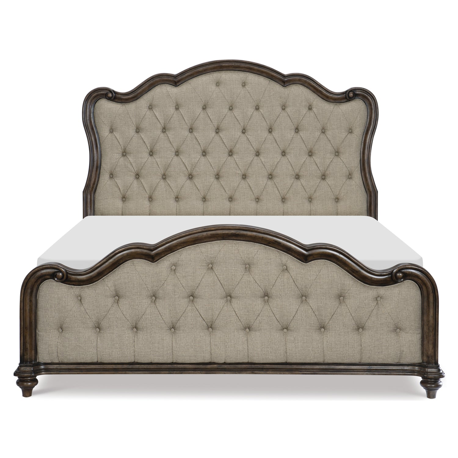 - Button-tufted fabric upholstered headboard and footboard