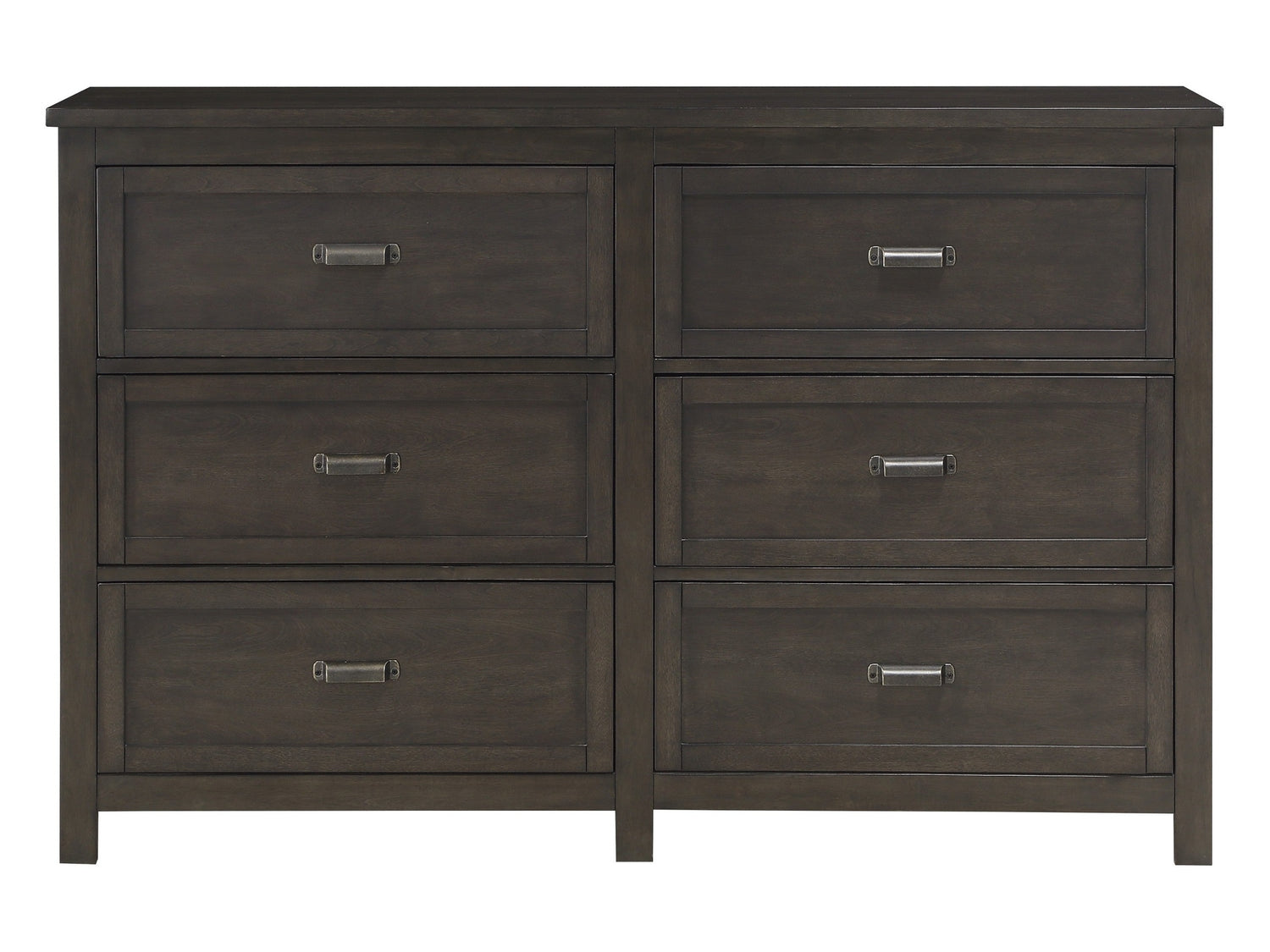 The transitional styling of the Hebron Collection creates a versatile look for your bedroom. The dresser features dark bronze finished cup hardware, providing complementing accent to the dark cherry finish that accentuates the grain of the birch veneer.