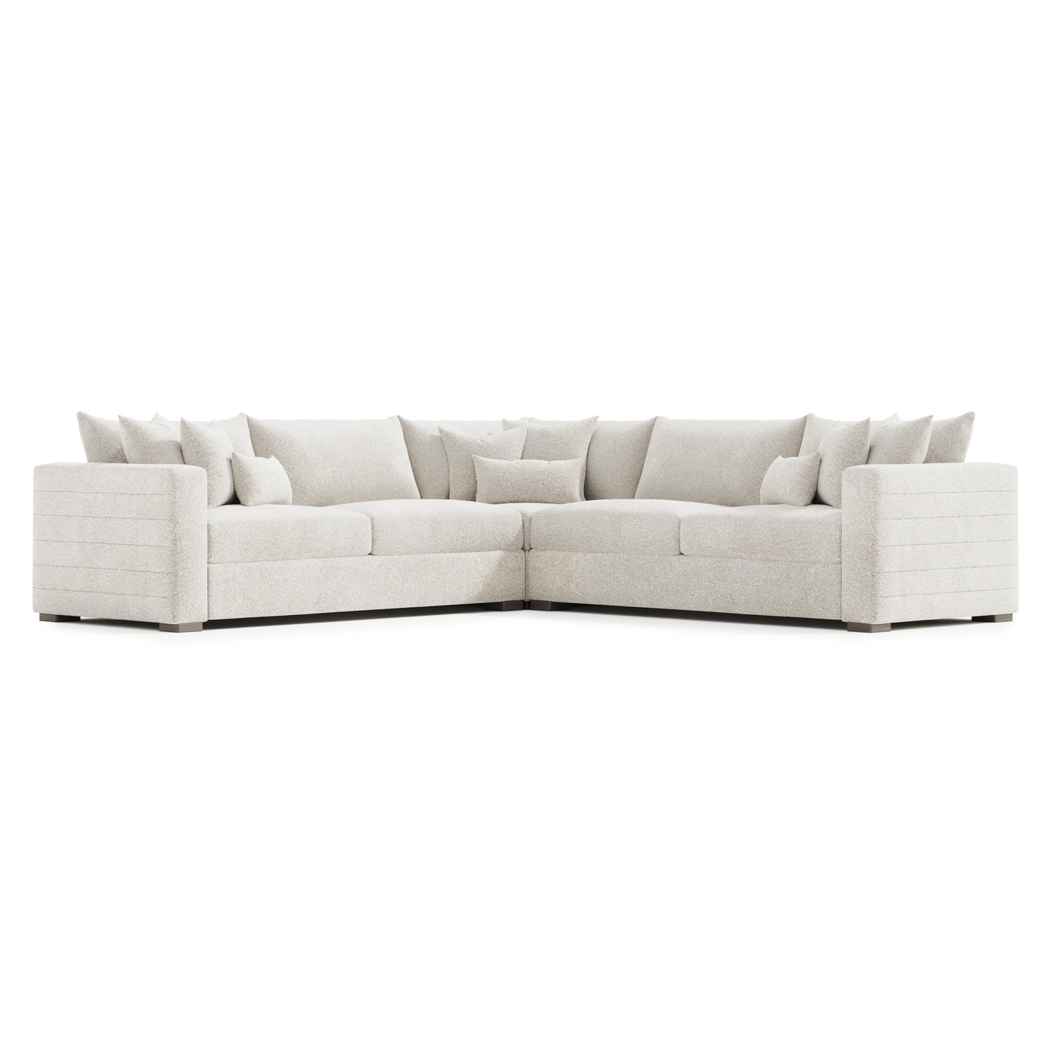 The Helena sectional's oversized track arms, low profile and brushed stainless steel feet lend it a streamlined look rooted in contemporary design. Designed with sinuous spring construction for durability and comfort, the sectional offers luxe feather-down cushions for the ultimate in relaxation.