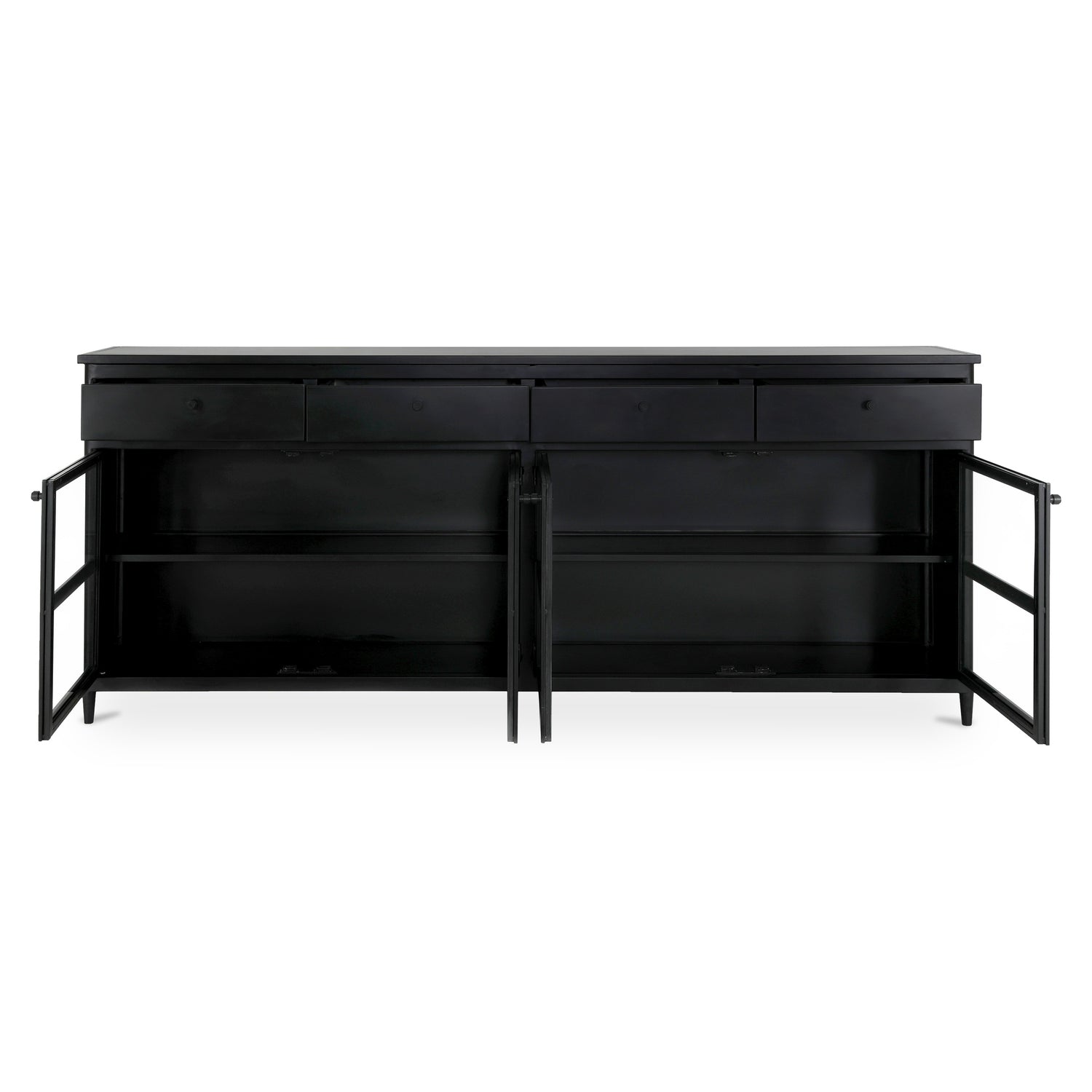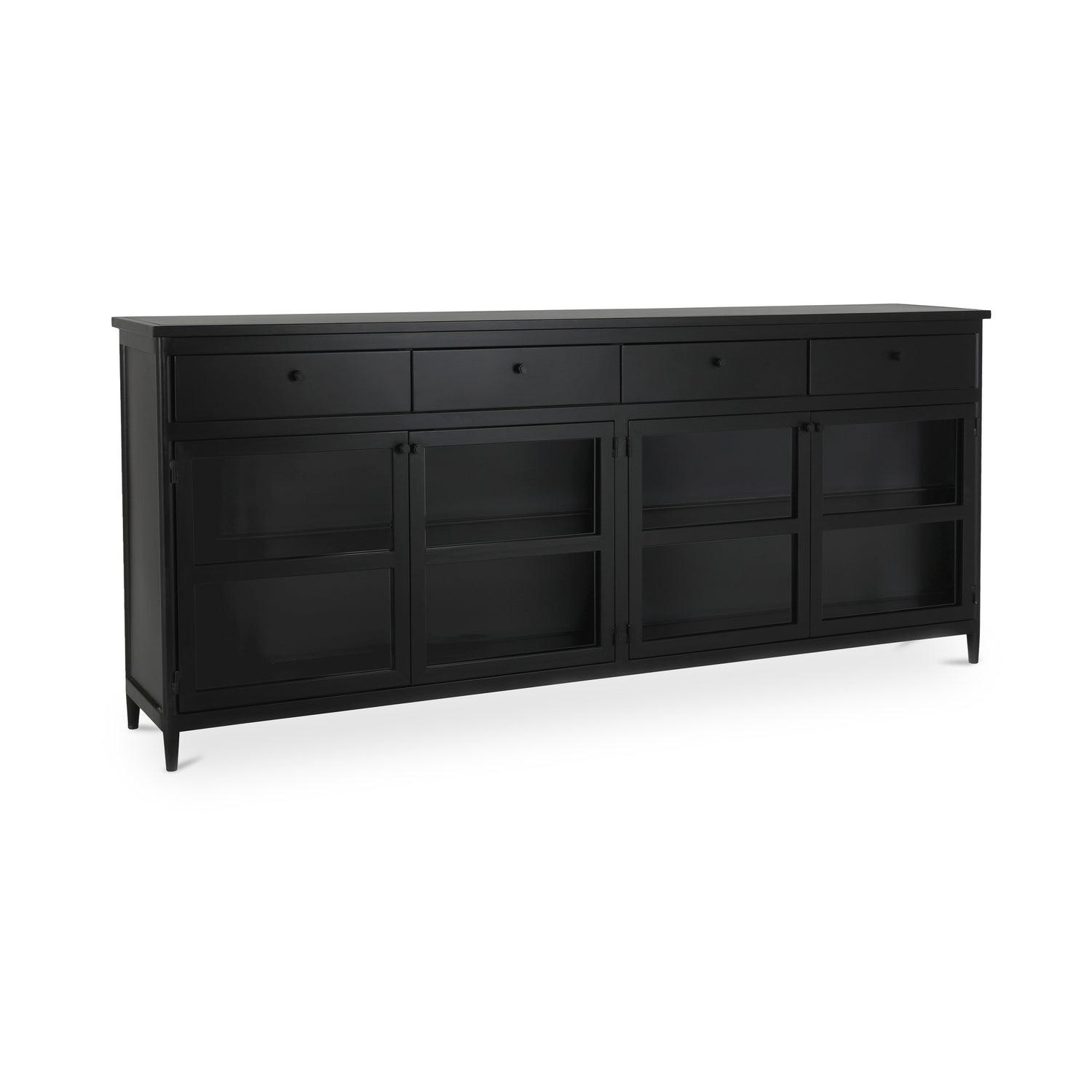 - A Balanced Display: Four glass doors and four drawers provide the perfect stage for displaying and storing cherished possessions.