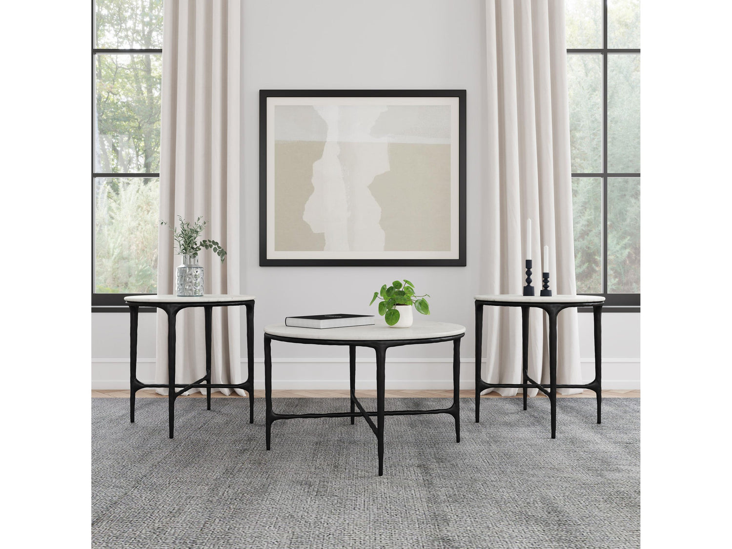- Includes: One (1) coffee table and two (2) end tables