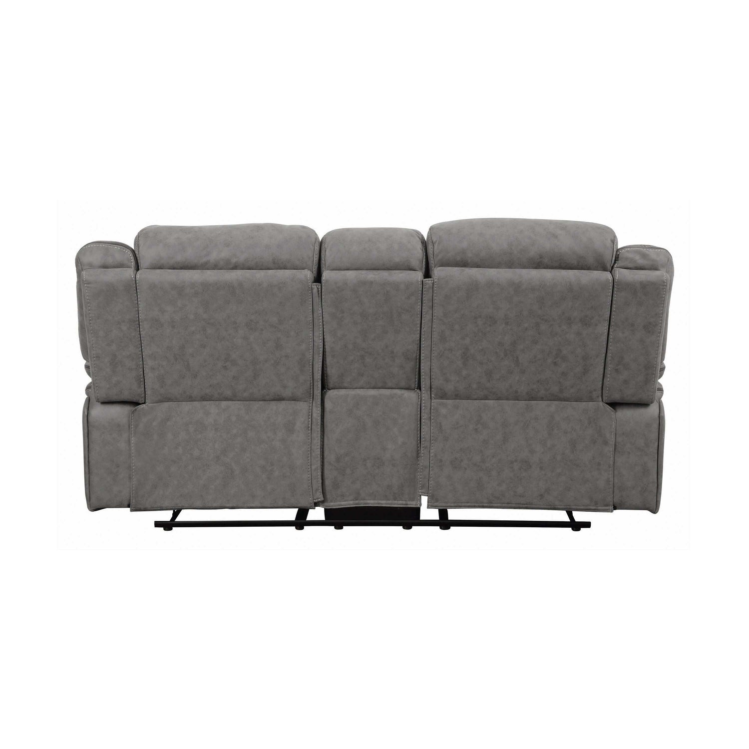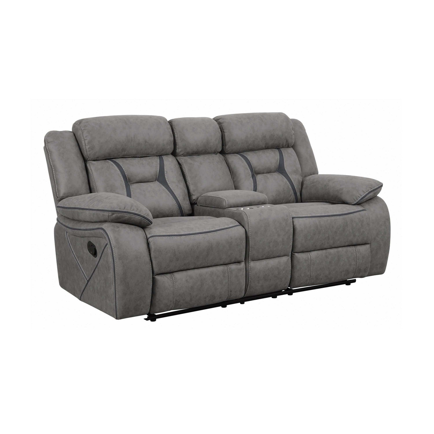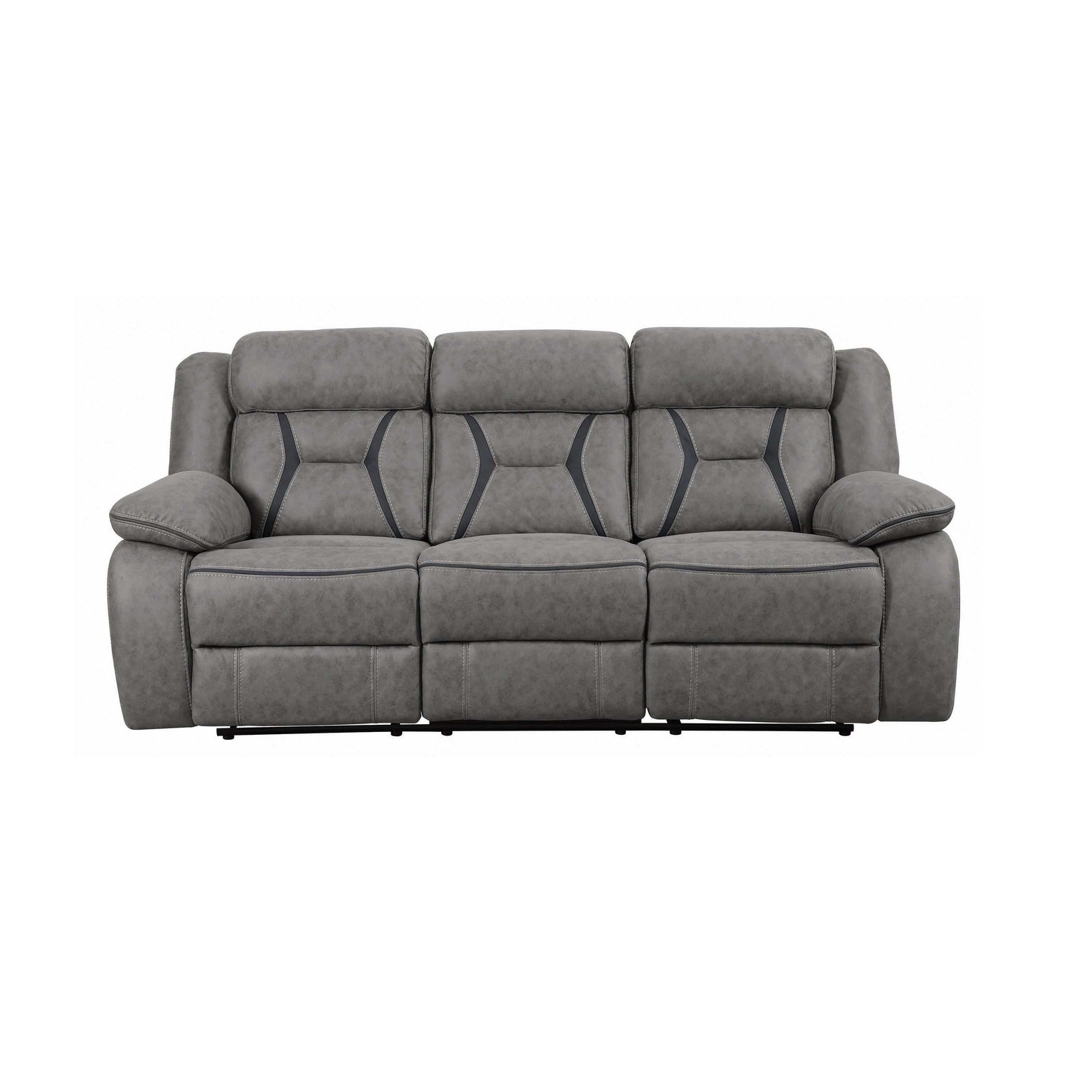 - Motion sofa collection upholstered in grey performance-grade coated microfiber