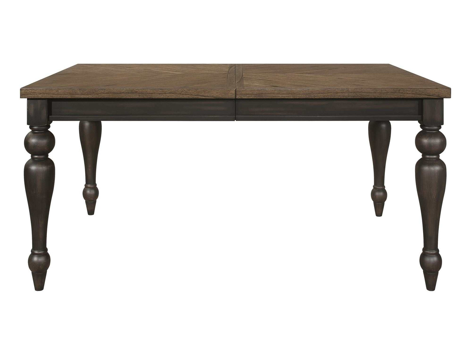 Furnish your space with this transitional dining table that exudes traditional charm and contemporary appeal. Turned legs spark vintage nostalgia while a cool two-toned finish modernizes your space. Providing extra convenience, its 18" leaf allows you room to host small get-togethers or larger parties.