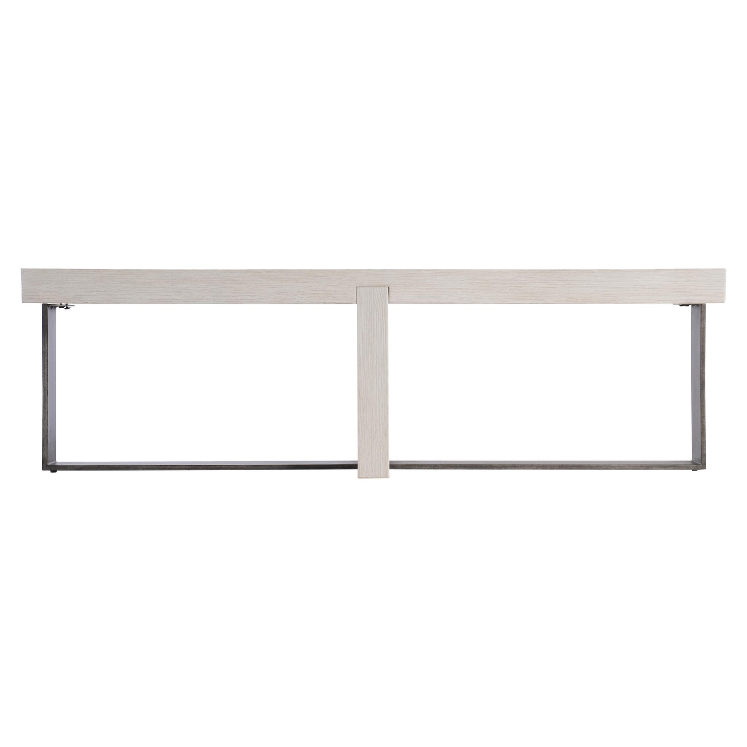 - Wire-brushed, quartered white oak-veneered top and support panels in Weathered Bone finish