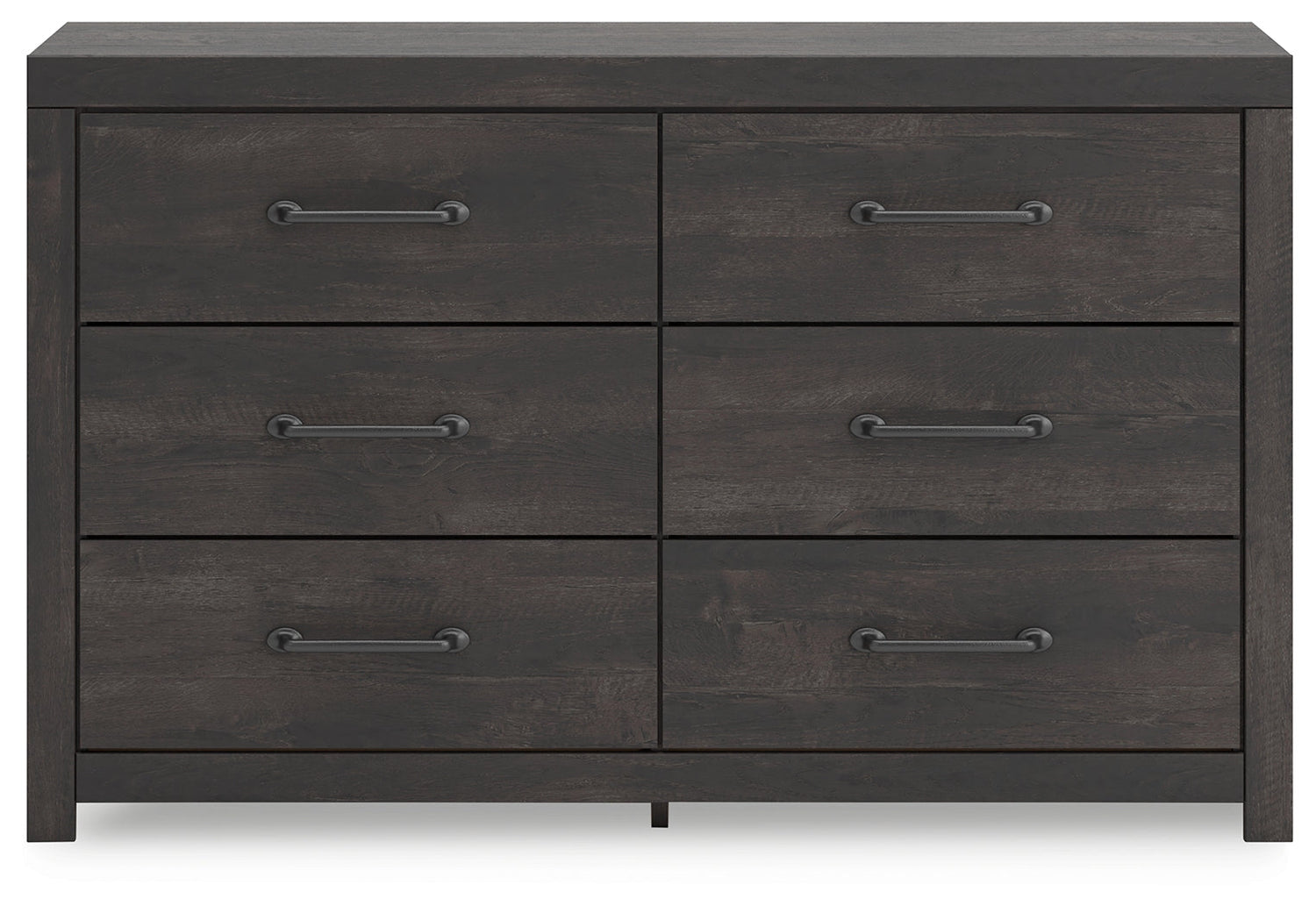 - Item Name: Hollivern Dark Gray Six Drawer Dresser