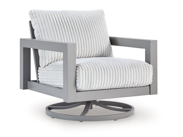 Indulge in luxe outside living without sacrificing longevity. This outdoor swivel chair combines on-trend texture with a sleek aluminum frame. Soak up the sun poolside or on the porch—a 360-degree swivel allows you to effortlessly turn to chat with guests or look after the kids. And with cleanable, UV-resistant Nuvella® fabric in a show-stopping corded look, style and durability go hand in hand.