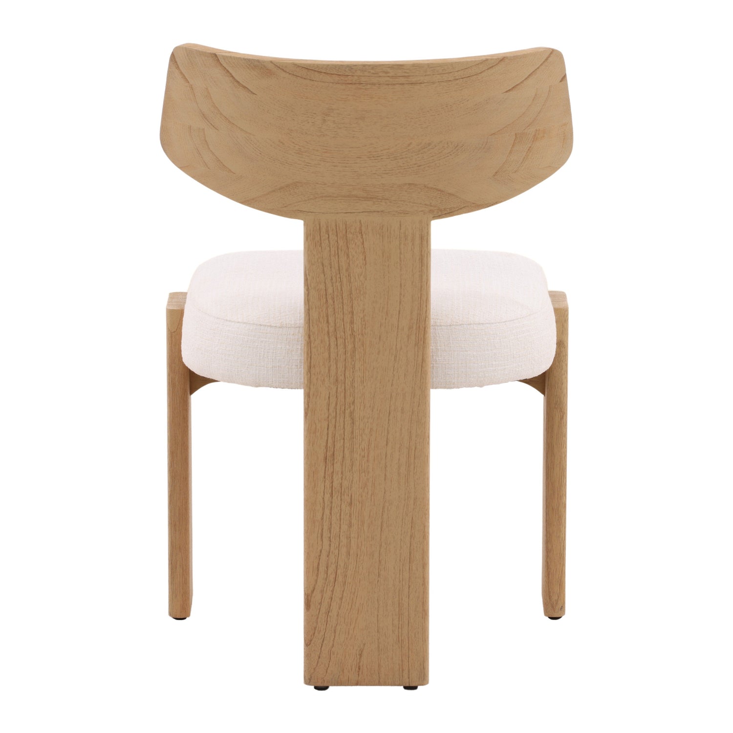 The Ian Dining Chair Set of 2 features soft boucle fabric upholstery in a sophisticated cream color, paired with a sturdy mindi wood frame finished in natural tones. The blend of plush comfort and sleek design makes these chairs a stylish and timeless addition to any dining space.