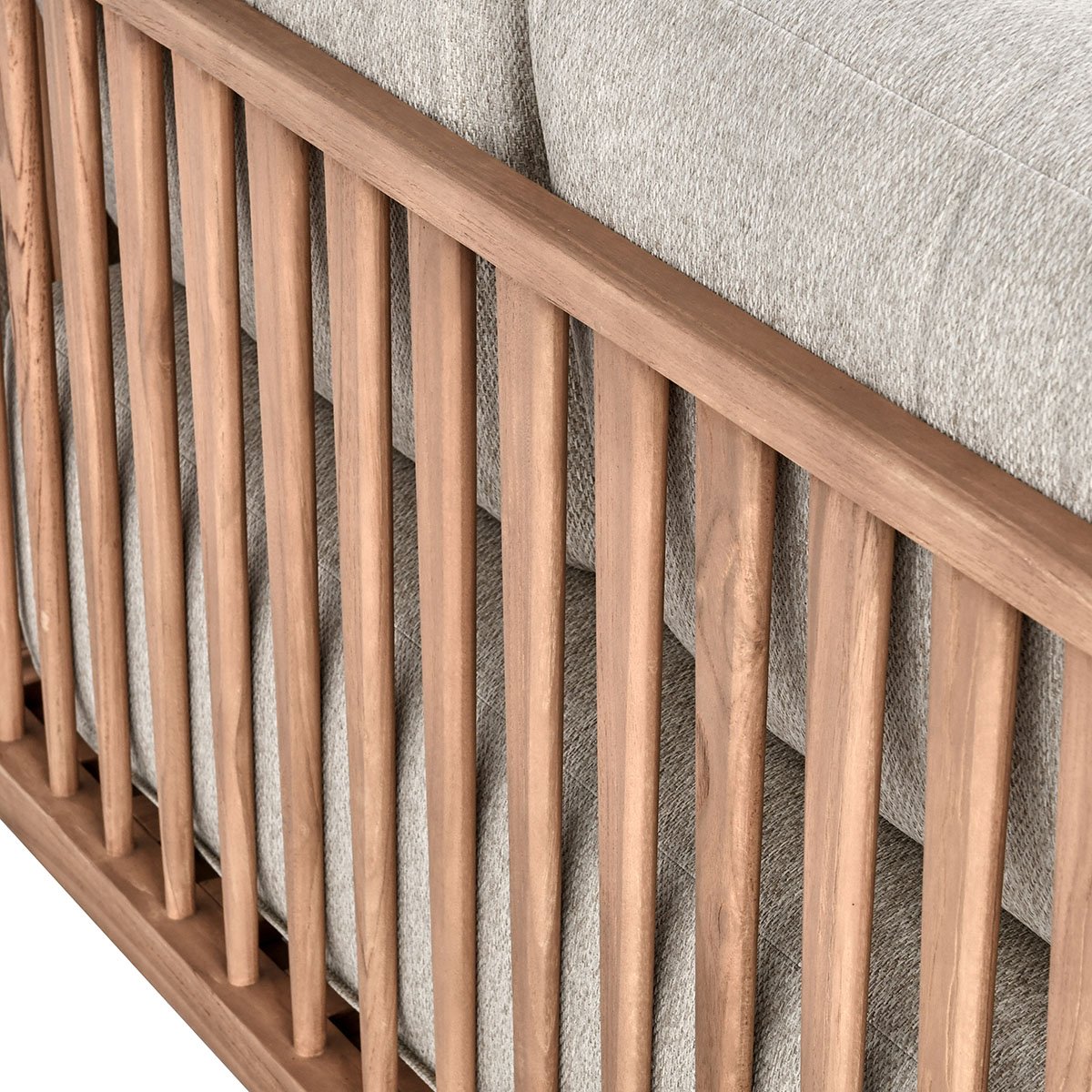 The Isla Natural Outdoor Sectional is an outdoor sectional constructed from pure teak wood and 100% Olefin fabric that provides relaxing comfort with its fluid lines and U-shaped silhouette. Its design pays tribute to a softer side of mid-century aesthetics. The naturally warm upholstery and durable teak wood lend polish to any outdoor experience.