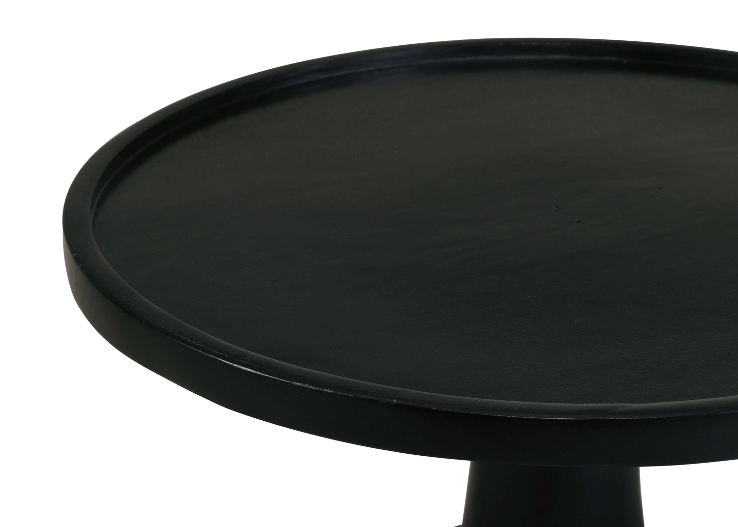 This global-inspired round accent table offers a striking design for any space. An elegant, solid contoured base tapers toward the top that supports a round table surface. Raised edges define the silhouette even further and keep items in place. Made of an eco-friendly mango wood, this accent table rests comfortably beside a small accent chair or acts as a standalone furniture piece to showcase decor. Allow it to hold a small table lamp or collection of family photos.