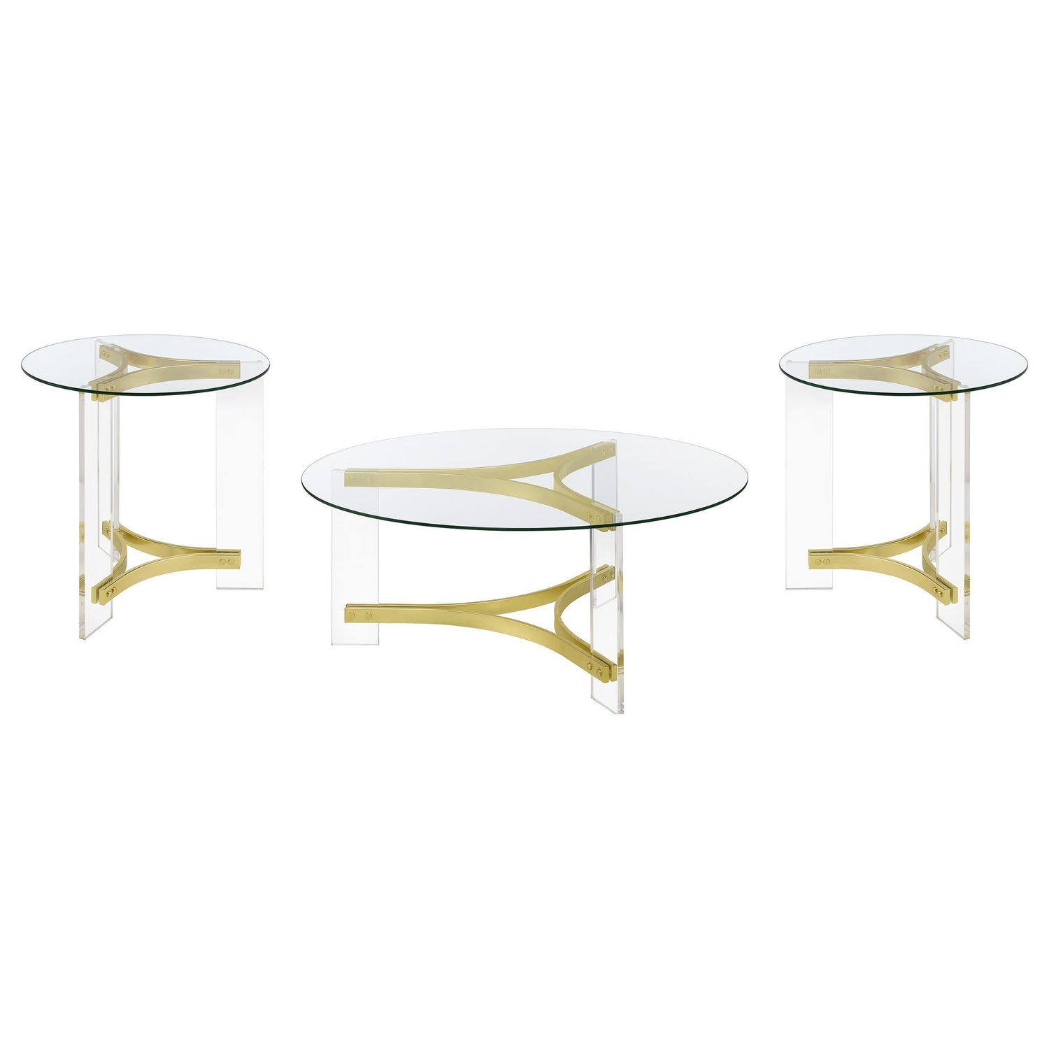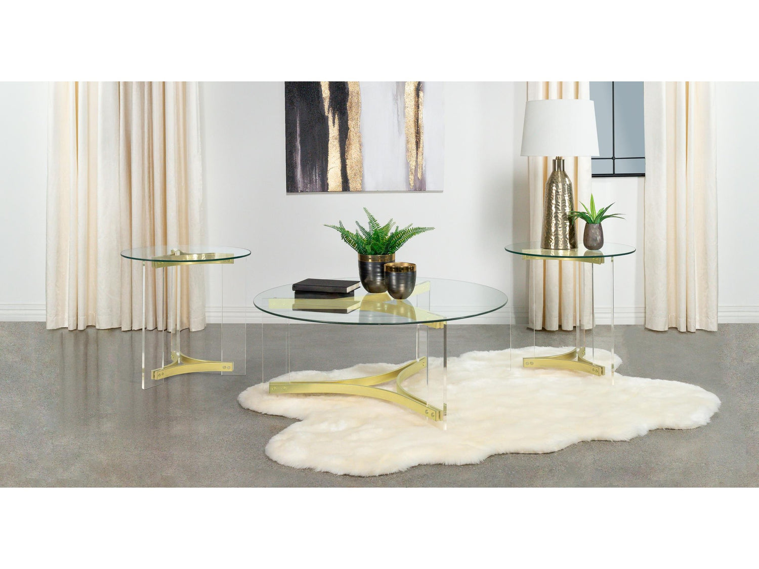 Janessa Matte Brass 3-piece Acrylic Coffee and End Table Set