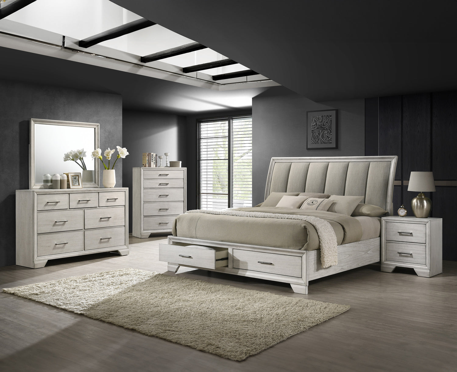 Jaymes White Mist Queen Sleigh Storage Platform Bed